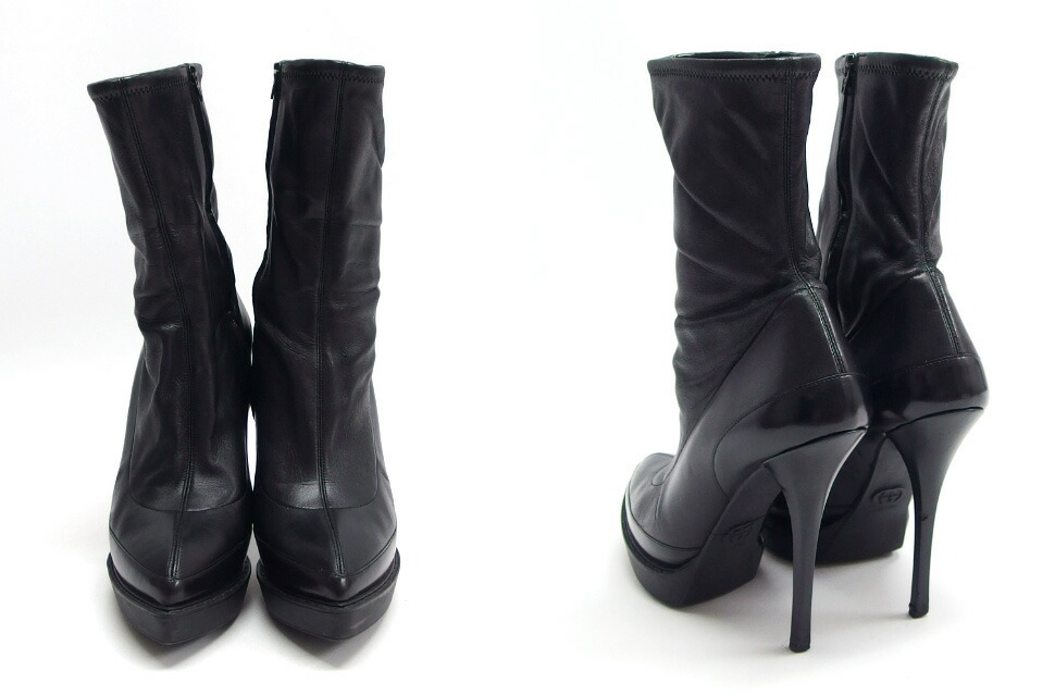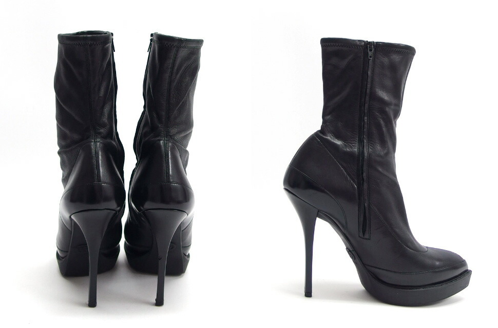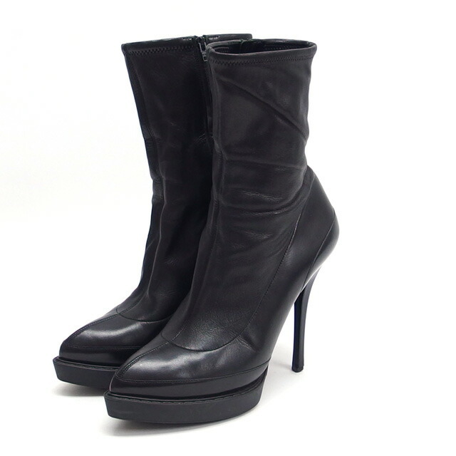 | 商品名 | ピンヒール ポインテッドトゥ レザー ミドルブーツ ショートブーツ ミディアム丈 ハイヒール ブラック(黒) ゴム底 サイドジップ 226336 サイズ37 約24cm レディース |