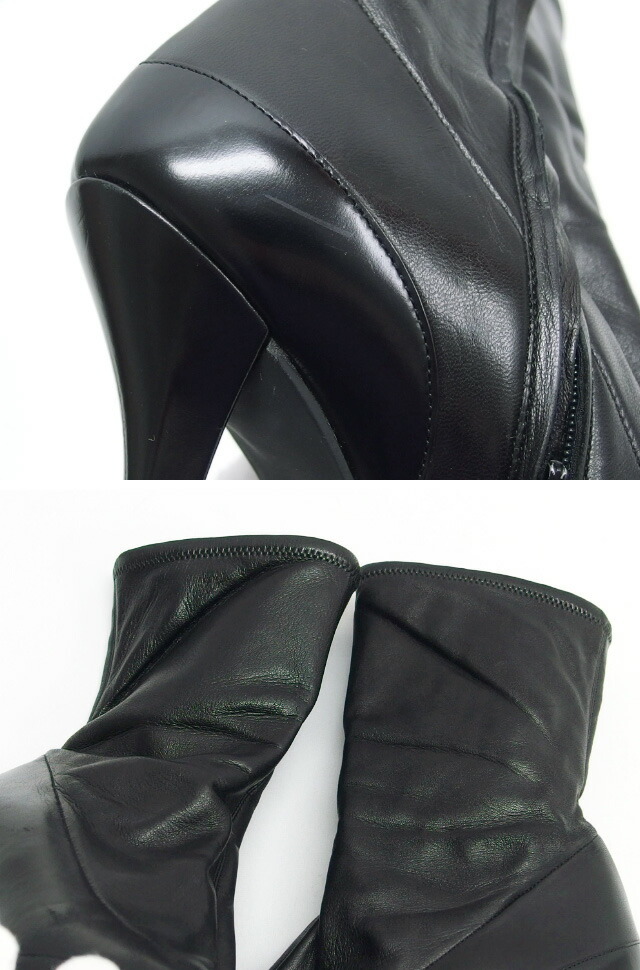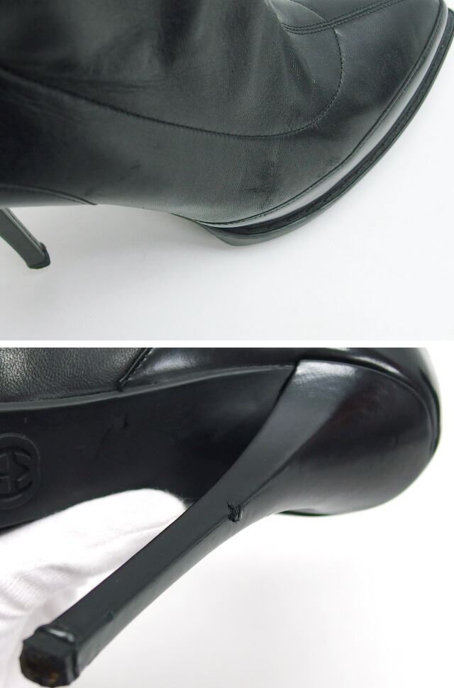 | 商品ランク | [中古AB] レザーにスレ・傷・シワ、ファスナー周りのレザーに接着の剥がれ・圧痕、内側に薄汚れ、ヒールにスレ・傷・減り、靴底に1ヶ所ワレ・傷などの使用感がございます。使用感はございますが、まだまだ十分お使いいただける商品です。※レザーの接着剥がれにより、ファスナーが動かしにくい部分がございます。 |