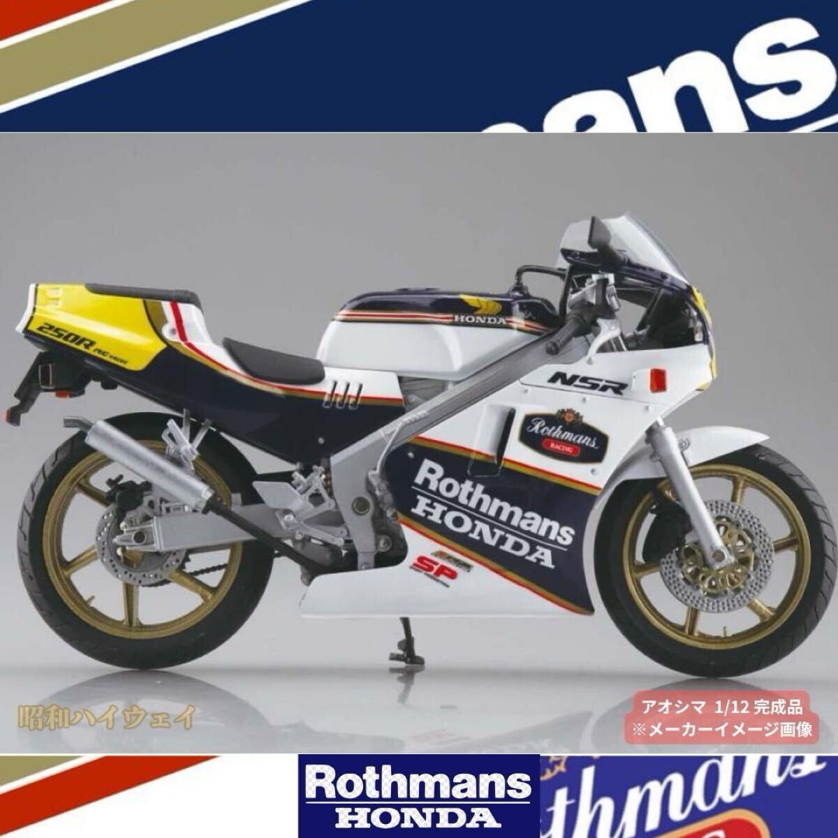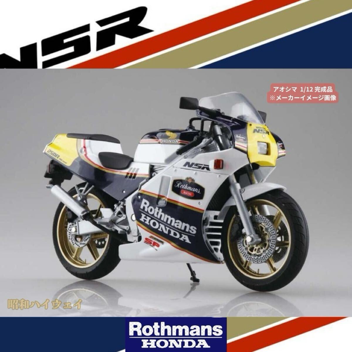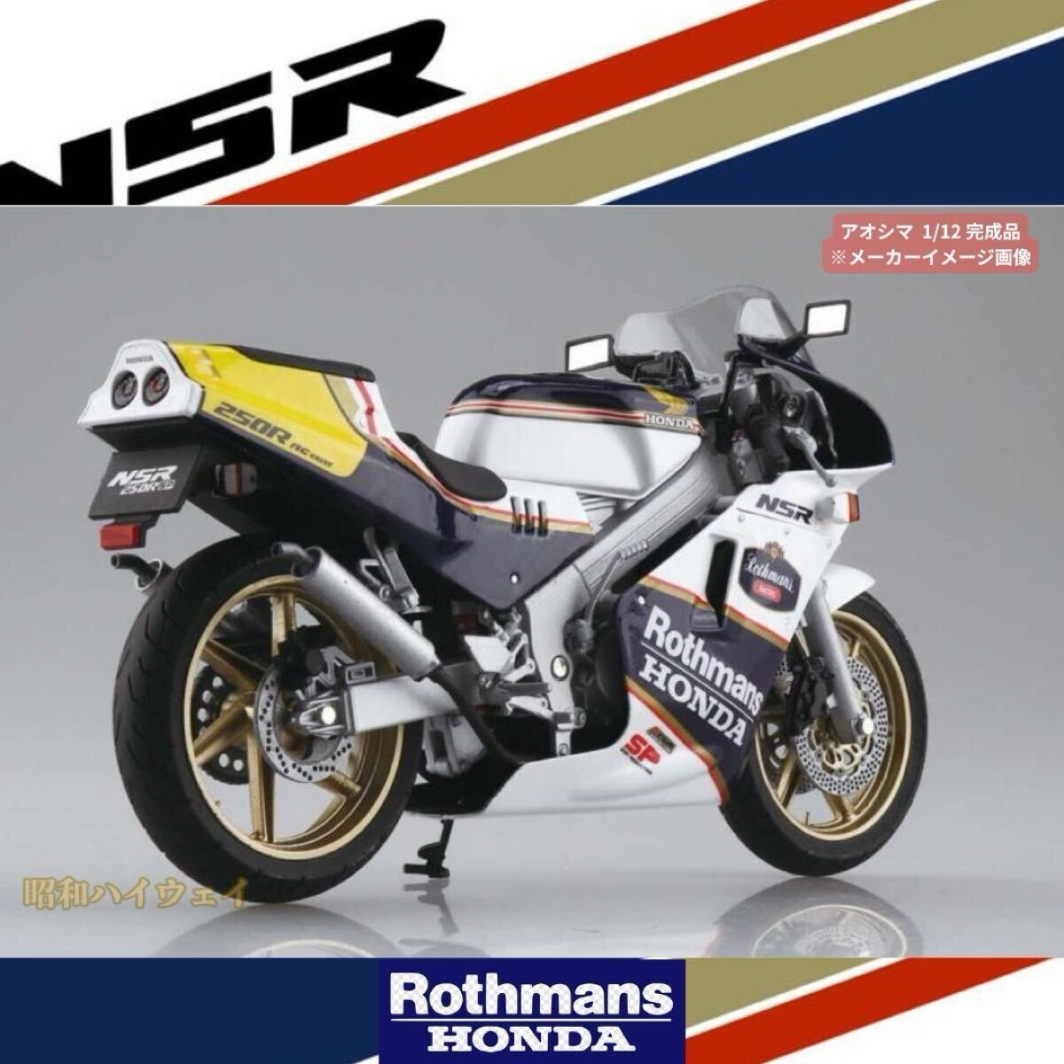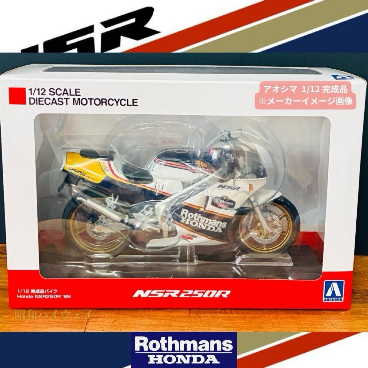 | ご覧頂きありがとうございます。オートモビリア雑貨の昭和ハイウェイです。 購入後にすぐディスプレイ出来る、アオシマ完成品塗装済みモデルです。 プラモデル製作苦手な方でも気軽にコレクション出来る人気シリーズ! 車種名:Honda NSR250SP '88 色:WGP レプリカ ロスマンズカラー 状態:未使用保管品 レビュー:WGP、日本の空前のバイクブーム、80年台。その中心にいたのは、レーサーを夢見た峠小僧の憧れレーサーレプリカ。その中でも、伝説的人気のNSR250R SP’88。 1986年から発売が開始された、Honda NSR250R。その中から1988年に発売されたMC18型のNSR250Rが登場です。特徴的なカウル・フレーム形状やカラーパターンなど、特徴的なシルエットを余すことなく再現しました。フレーム・タンクはダイキャスト製を採用し、重量感・質感ともにハイレベルな完成品モデルです。 今では高騰して高嶺の花の、あの時代の俺たちのマシン。完成品ですので、ガレージ、趣味の空間、熱かった淡い青春時代の思い出に是非オススメ致します。 #ミニカー #モデルカー #バイク #ダイキャスト #完成品 #塗装済 #SKYNET #スカイネット #アオシマ #AOSHIMA #1/12 # 青島文化教材社 #NSR #ロスマンズ #バイク | ||