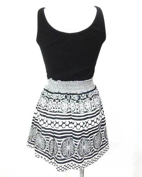 | 素材 | 表地 上部 レーヨン50% 綿50% ウエスト部分 綿53% ポリエステル47% 下部 綿100% 裏地 ポリエステル65% 綿35% |