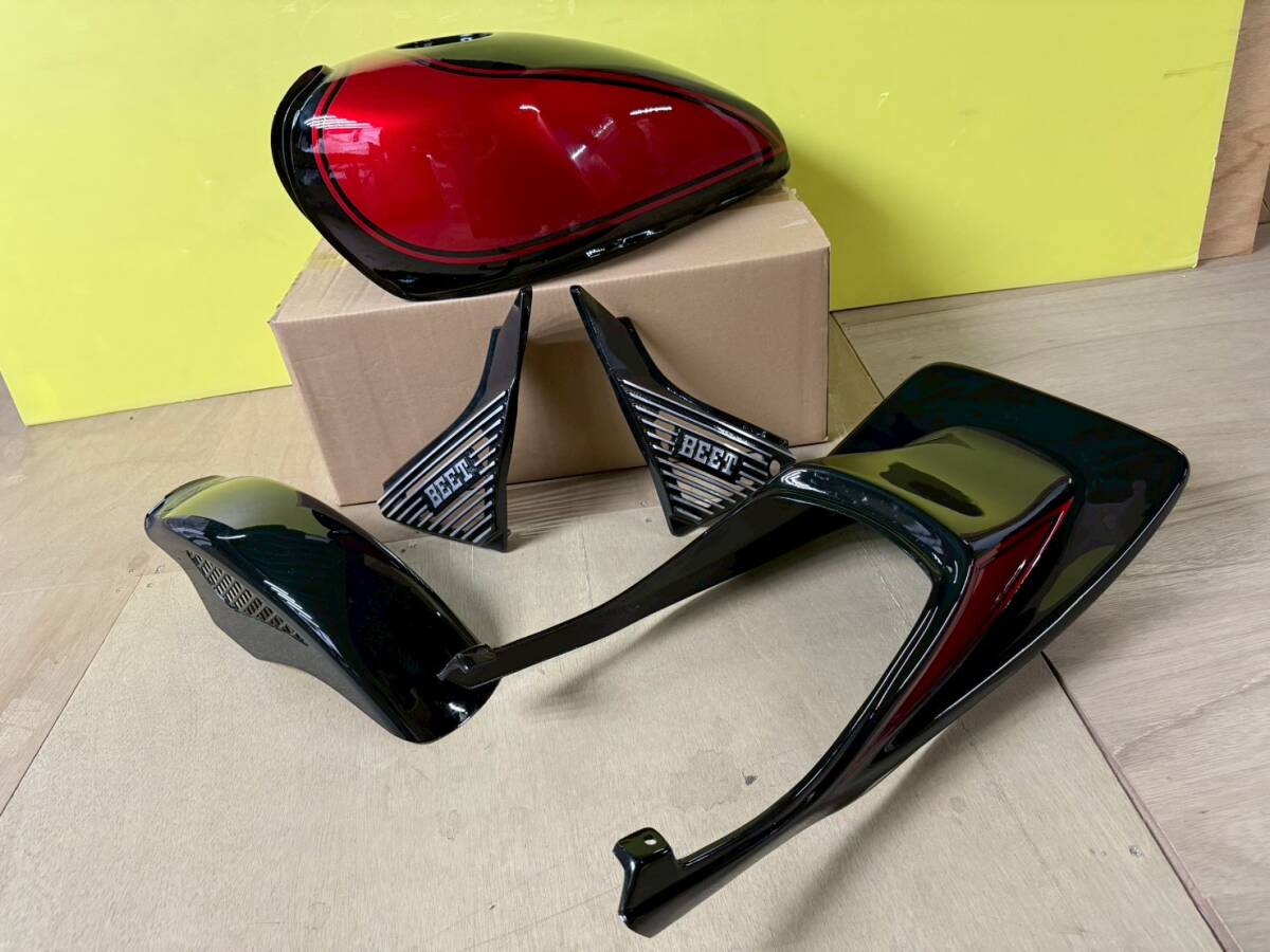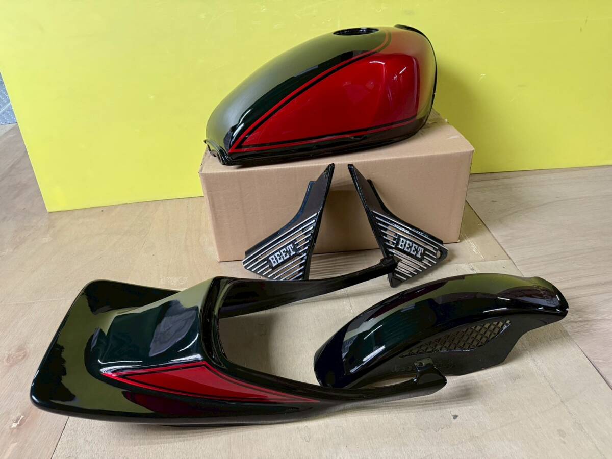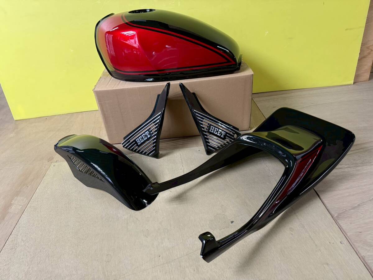 ゼファー400外装セット 黒赤 メッシュフェンダー ロゴ タンク ハネテールカウル アルフィンSTDロゴ/社外ZR400C BEET外装 サイドカバー