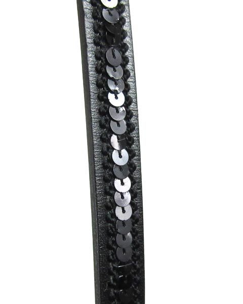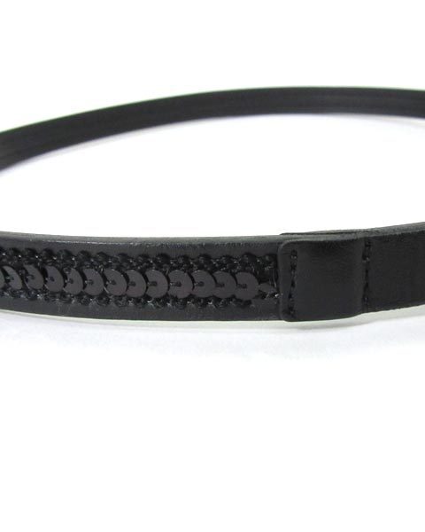 | 細身のシンプルなベルト。スパンコールと刺繍ががついていて、ウエストマークなどにおすすめのアイテム。黒なのでコーディネートしやすく、使いやすい。 |