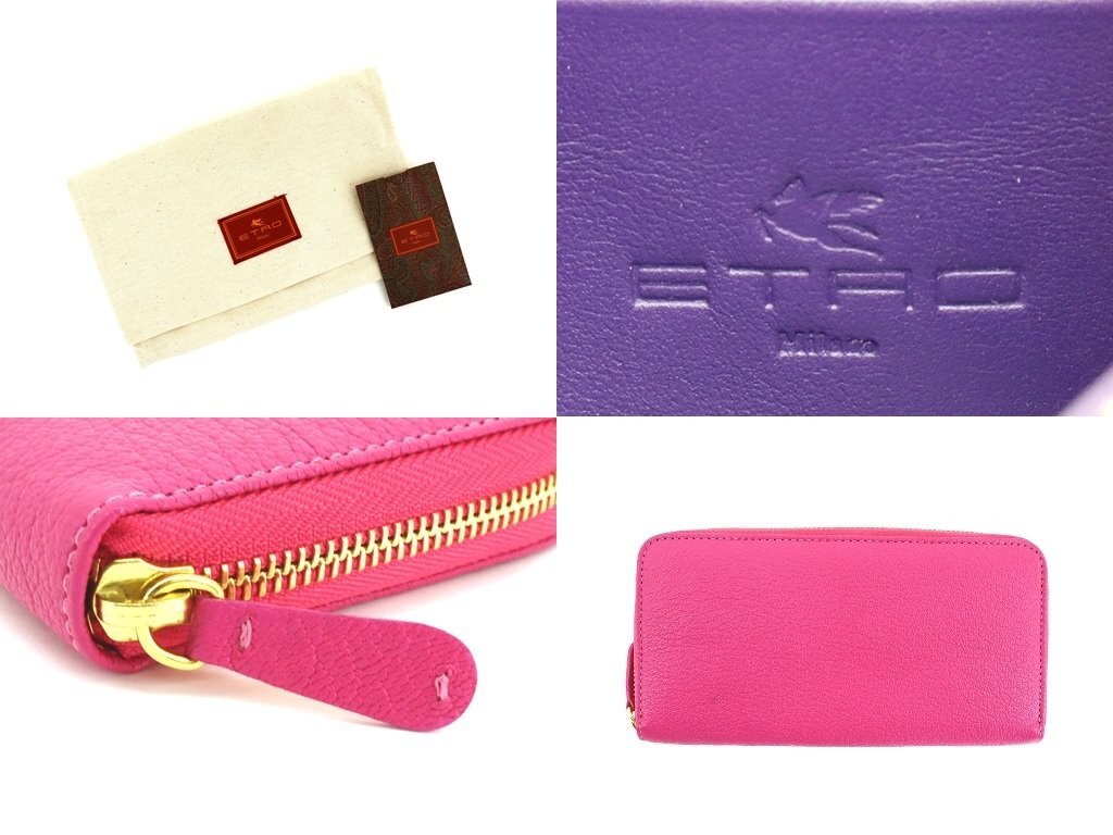 11万新品◆【ETRO】エトロ スムースレザー ラウンドジップ長財布 ピンク ダークパープル