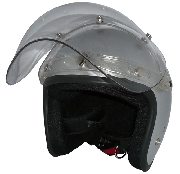 | 対応オプション | ■装飾用ビンテージゴーグル対応 装着の場合は重量が約85グラム増加します。 脱落防止のため、必ず後方のゴーグルバンドで固定してください ※ビンテージゴーグルはデザイン重視の装飾用であり、 通常の使用には適しておりませんので、ご留意ください。 ■3点ボタン固定式汎用シールド対応 装着の場合は重量が約170グラム増加します。 ※バブルシールドは構造上、球面のため正面以外の視線では 風景が若干歪んで見える事もございます。 気になる場合はRAMシールド等の2次元シールドをご選択下さい。 ■3点ボタン固定式汎用フリップアップベース対応 装着の場合は重量が約90グラム増加します。 ※フリップは調整ができるように、若干カシメが甘くなっております。 固定が安定しない場合は、左右の吸盤をはがし(両面テープ)金属の カシメ(ハトメ)部分を釘などで軽く叩いて、固定力の調整ができます。 ■3点ボタン固定式汎用バイザー対応 装着の場合は重量が約20グラム増加します。 |