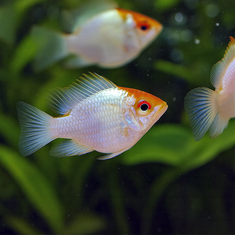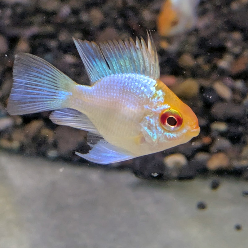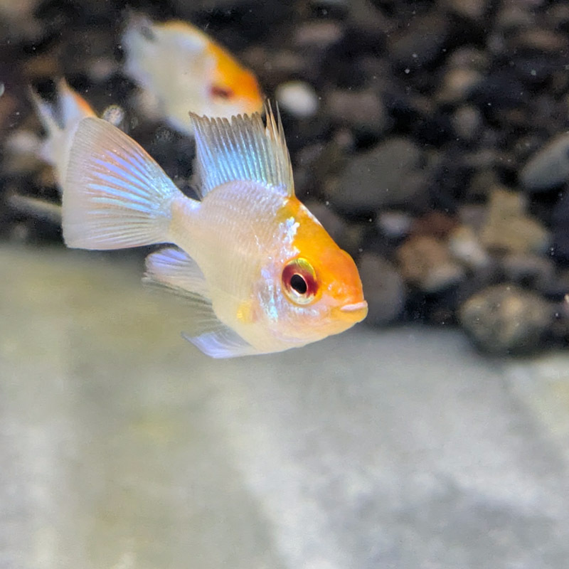 とても目を惹く美しい改良ラミレジです。バルーンタイプは見た目による雌雄差がほとんどでないので雌雄判別不可となります。