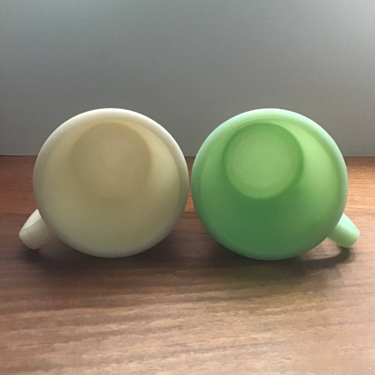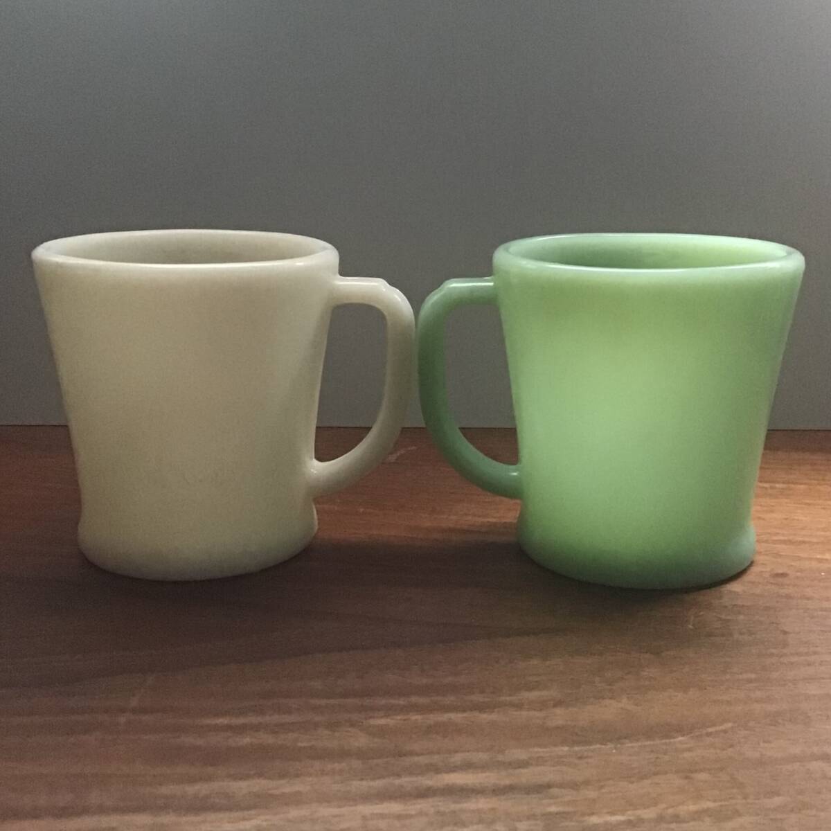 多数ある中からご覧頂きましてありがとうございます。 人気の高い乳白色のミルクガラス「ジェダイト」と「アイボリー」のフラットボトムマグカップ 2個 セットです。 どちらも状態も非常に良く、コレクションにミッドセンチュリーモダン (MCM) の魅力を添えてみませんか。 お探しの方は是非チェックしてみてください!