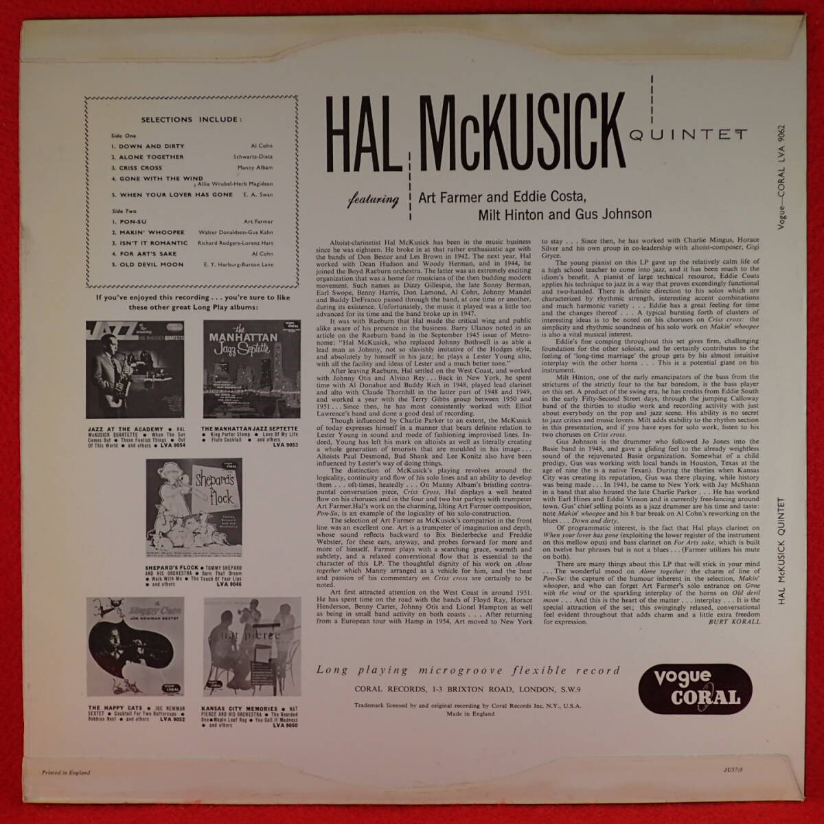 | 宇宙級レア★ART FARMER参加★奇跡のデッドストック超極美品★UK完オリ★VOGUE★HAL McKUSICK QUINTET★EDDIE COSTA★究極音圧 | ||