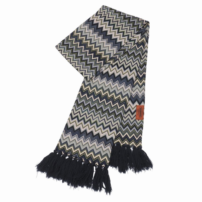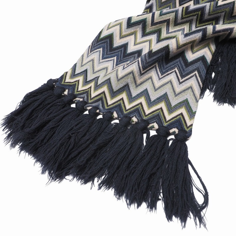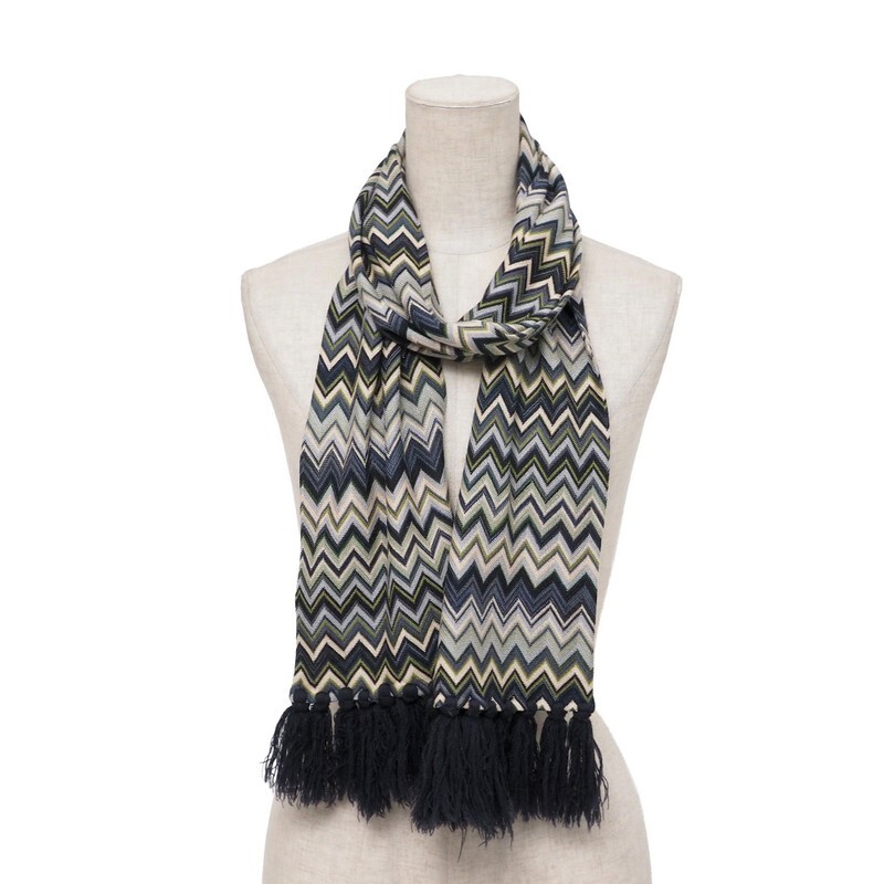 | XXXX■イタリア製 MISSONII ミッソーニ 幾何学柄ニット ストール マフラー ネイビー/グリーン系 | |||