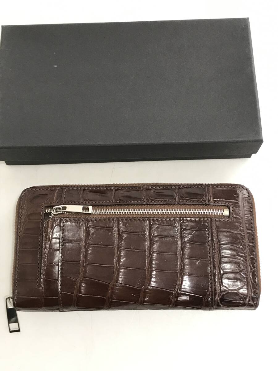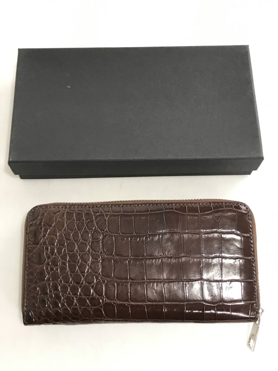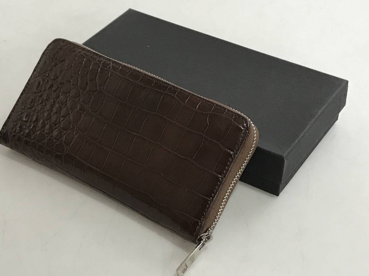 商品名 | クロコダイル 長財布 ラウンドファスナー ワニ革 レザー ブラウン 小銭入れあり 専用袋・箱付き 未使用品 |