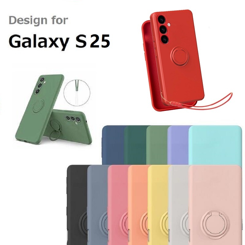 | Galaxy S25 SC-51F用 リング付 硬質シリコン ソフトバックカバー 落下防止 スタンド ストラップ付 |