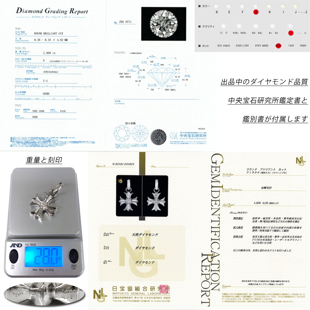 | 品質について | 日本で一番支持されている中央宝石研究所の鑑定書付きです! 1.00ct G-I1-GOOD 無色で照りの良いダイヤモンドです。 |