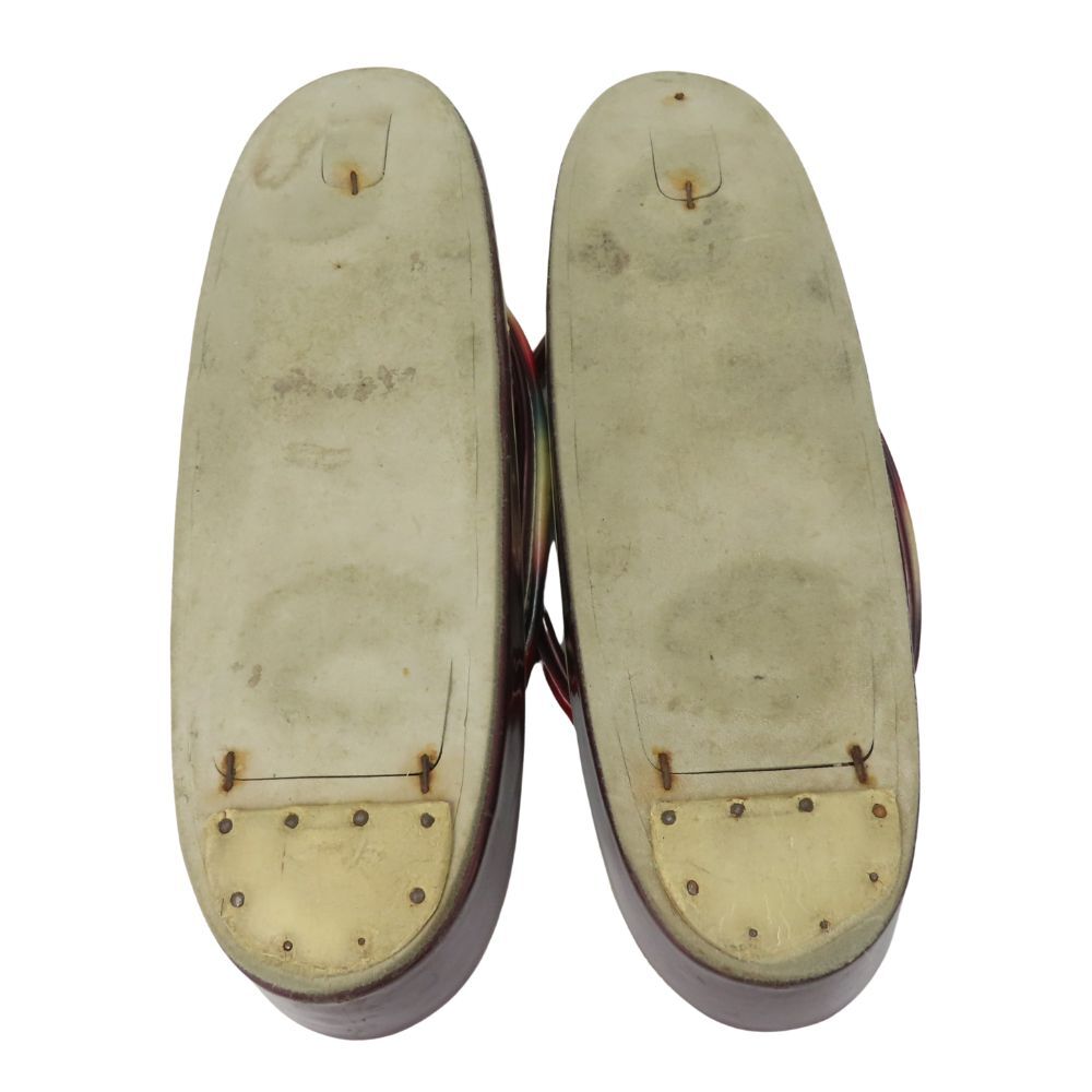 | 商品詳細 | 表面に汚れ・スレ・ひび割れ・若干のキズ、鼻緒にひび割れ、底面に汚れ・すり減り・多少の剥がれ がございます。 気になる点などございましたら、お気軽にお問い合わせください!! |