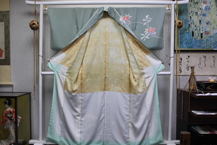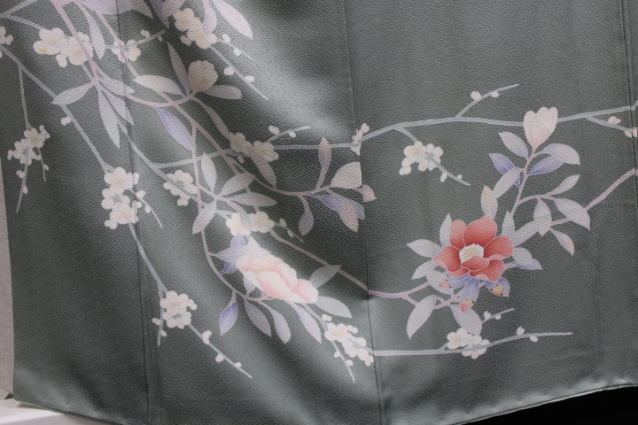 付け下げ訪問着 広衿袷手縫い仕立 高級正絹綸子地 抹茶色地に手描きの山茶花の花柄| 出价者 | 信用 | 价格 | 时间 |