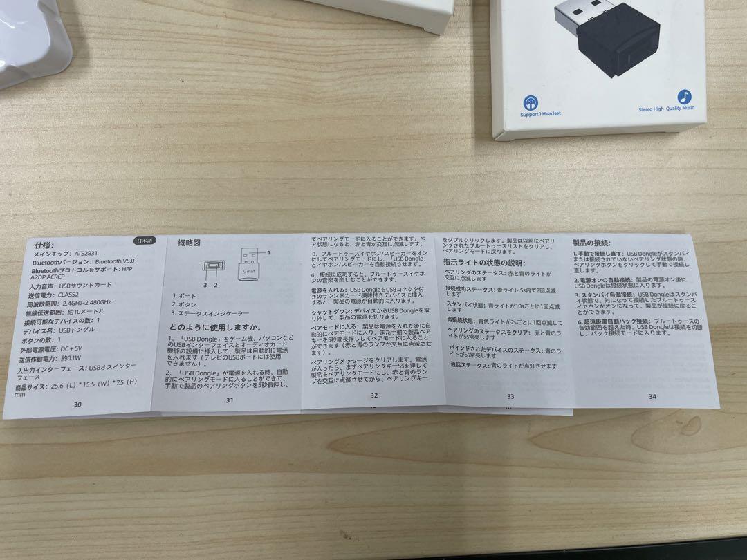 撮影のため開封していますが、実際に発送するのは新品・未使用・未開封品の商品です。 ゲーム機やパコソンの音声をBluetoothイヤホンに出力するためのトランスミッターです。 日本語のマニュアル付き。