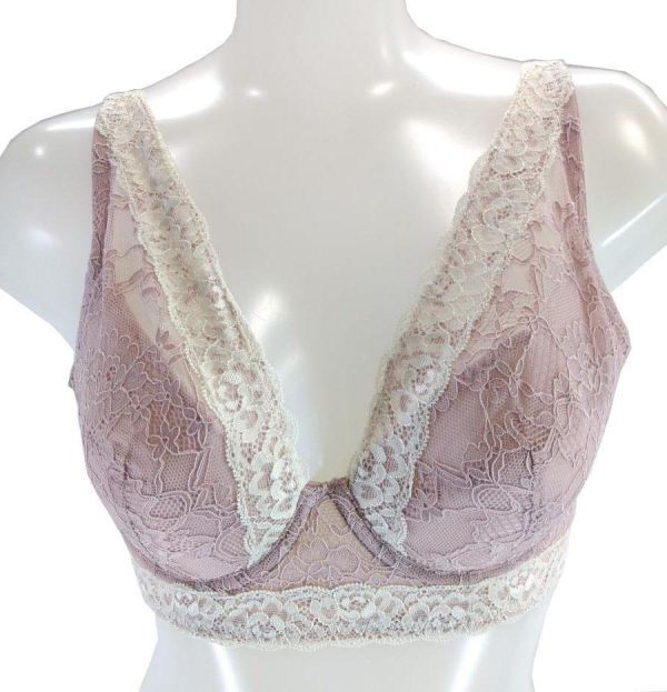 ブラジャー ミドル丈 脇ボーン ストラップ調節 胸元レース 花柄レース バックメッシュ シンプル |