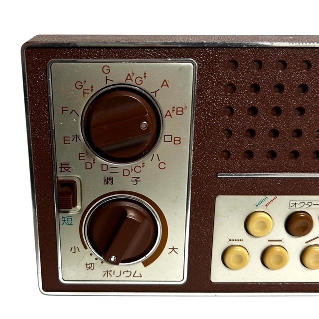 | 商品説明 梅花流詠讃歌の練習用として作られた、琴のような音色を奏でる電子楽器です。 ボタン操作部や金属パネルの質感も当時のままで、コレクションやインテリアにもおすすめです。 詳細 ●サイズ:横31.5cm、縦12.5cm、厚さ5cm ●付属品:ACアダプター、イヤホン ●動 作:動作確認済み ●ランク:ヴィンテージ ●コンディション:本体全体に小傷が目立ちます。 電池の蓋にサビがあり、劣化しています。 ※単2電池6本必要です。 |