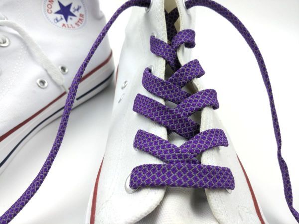 | 120cmなので、ローカットのスニーカー用です。 リフレクターが使用されているので、夜間のジョギングなどに最適です。 長さ:約120cm カラー:写真の通り 1足分(2本セット) パッケージ等はございません。 ※見本のスニーカーは使用イメージです。(長さが異なります。) |