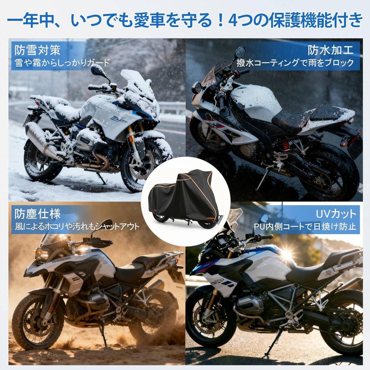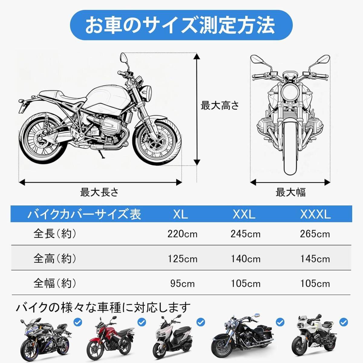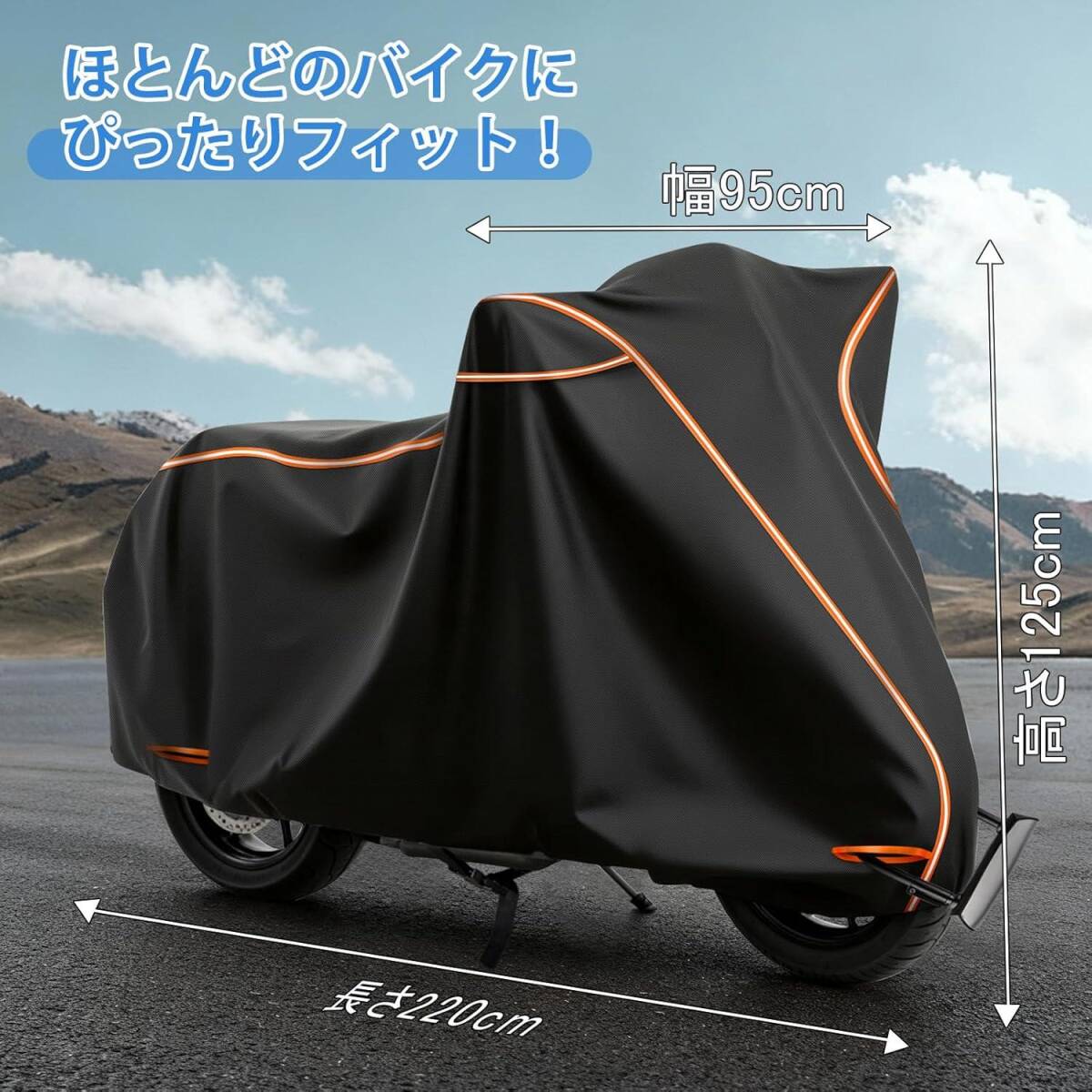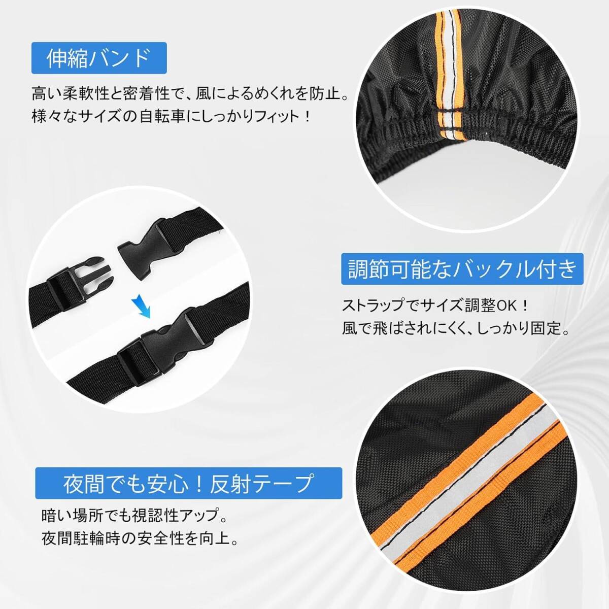 | 固定方式 | 三重固定(前後輪ストラップ+中央バックル+裾伸縮バンド) |