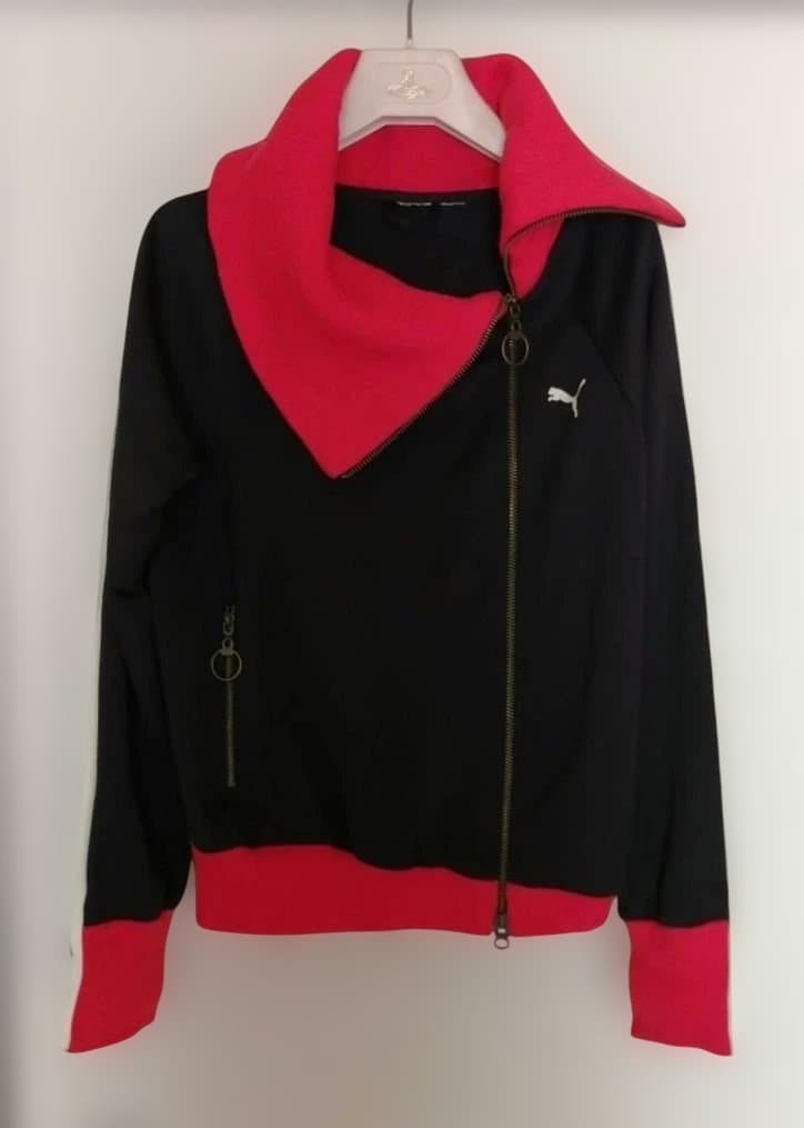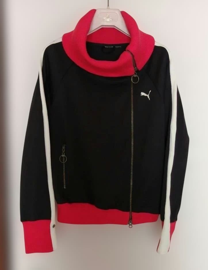 ハイネックデザインのPUMAジャージ、カジュアルなスタイルに最適。