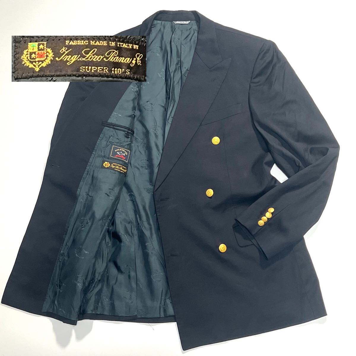 1円〜【大人お洒落】美品 ポールアンドシャーク PAUL&SHARK ロロピアーナ テーラードジャケット ダブルブレスト ブレザー 金ボタン 黒 48 | |||