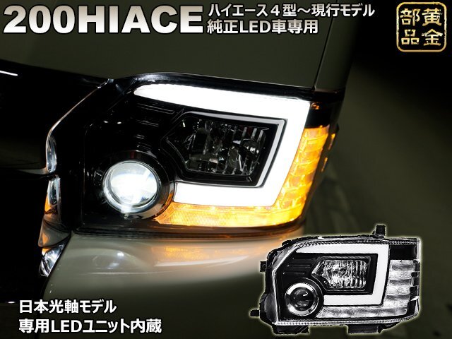 純正LED車より明るいと評判! 200系 ハイエース 4型~ ファイバーLED LEDヘッドライト ブラッククロームタイプ (純正LEDヘッドライト装着車用) 流れるウインカーモデル | |