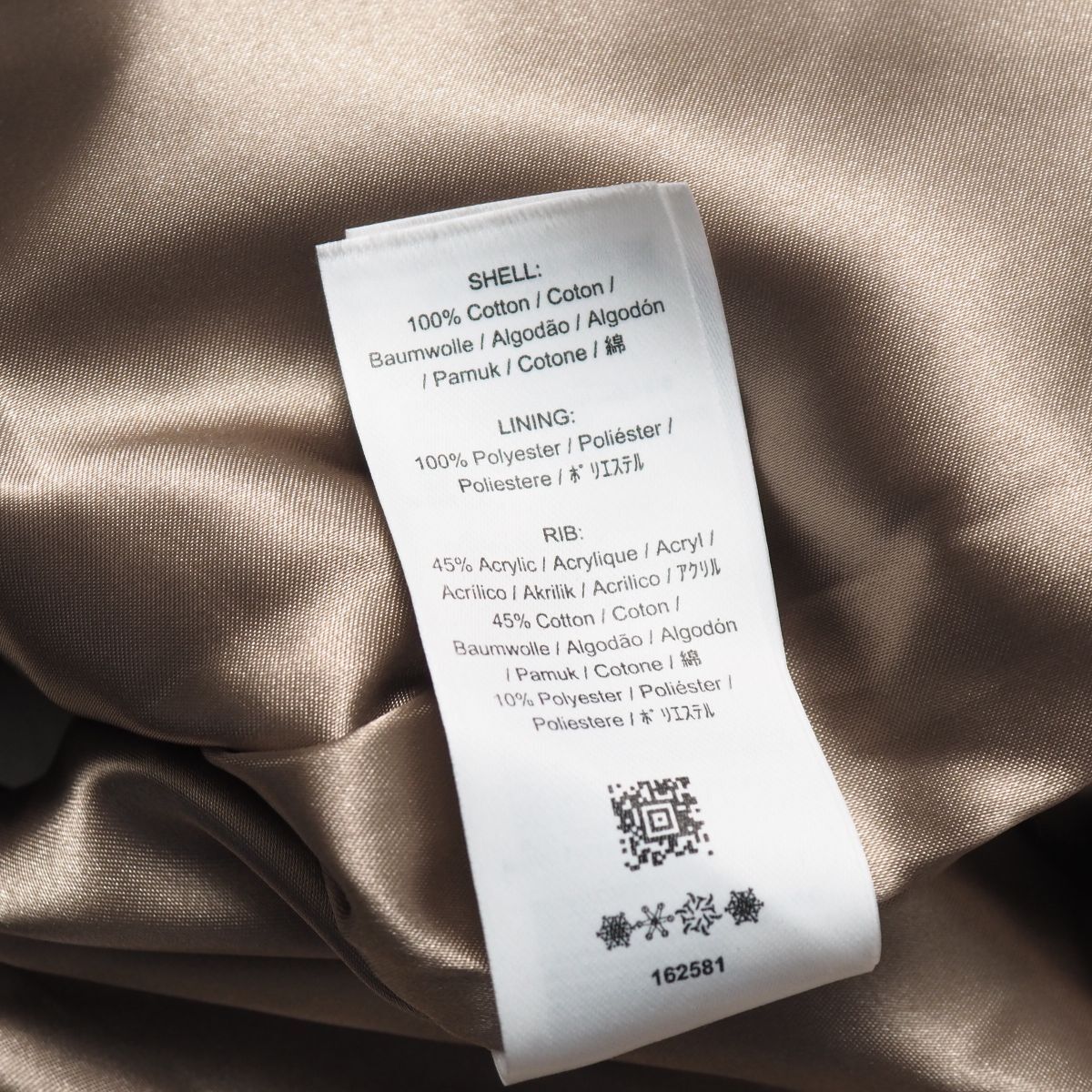 | 素材 | 表地 :コットン100% 裏地 :ポリエステル100% リブ :アクリル45%、コットン45%、ポリエステル10% |