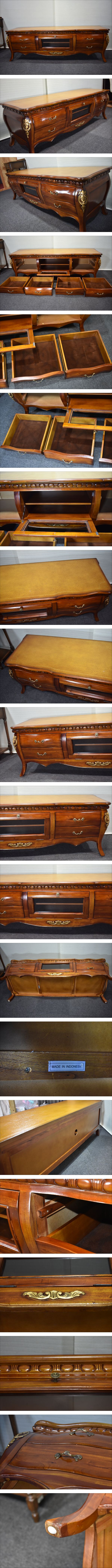 インドネシア「バリ家具職人」がハンドメイドで時間をかけて 完成させたTVボード/サイドテーブル/です。上質な無垢のチーク材を ふんだんに使っていますので高級感があります。 又とないこの機会をお見逃しなく是非お買い求めください。 サイズ 横幅160cm 奥行52cm 高さ51.5cm コンディション 良好 ※使用感の極めて少ない美品ですから快適にご使用頂けます。 ■重要なお願い■ 落札後すぐに「取引ナビ」から電話番号をお知らせください。 2022年7月からのシステム変更に伴い落札後に電話番号が表示されなくなりましたが、発送先の電話番号は必須項目となりますので落札後に取引メッセージ欄より必ず電話番号をお伝えください。※個人出品ですから消費税は頂きません。 ※今回出品する品物は写真の物ですべてとなりますのでご了承下さい。 ※動作保証します。 (万が一初期不良が発生した場合は全額返金する事をお約束致します) ■重要なお願い(必須)■ 落札後取引ナビから配達当日に繋がる「電話番号」をお知らせ下さい。 (電話番号がないと発送できません。) | |||