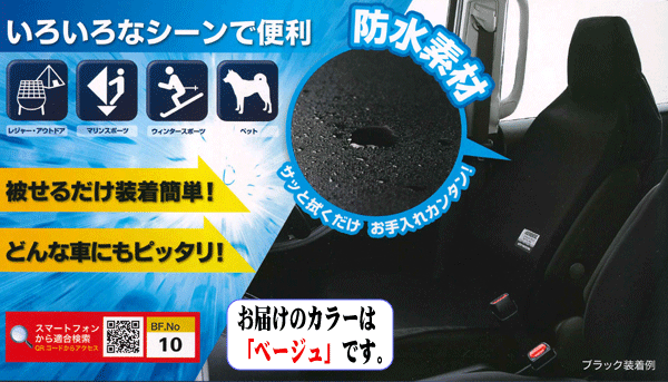 ●主な特長● ◆アウトドア・マリンスポーツ・ウインタースポーツペットとのドライブに! ◆防水素材でサッと拭くだけお手入れ簡単! ◆様々な形状のシートにも対応 ※適合については画像で確認下さい。 ※特殊シート・特殊ヘッドレスト(特に大きいヘッドレスト)の場合は、取り付けできませんので、シート形状をご確認の上、お買い求めください。 ●商品詳細● ※大垣産業 BONFORM ※品質/ポリエステル:100% (裏)PVCコーティング ※カラー/ベージュ