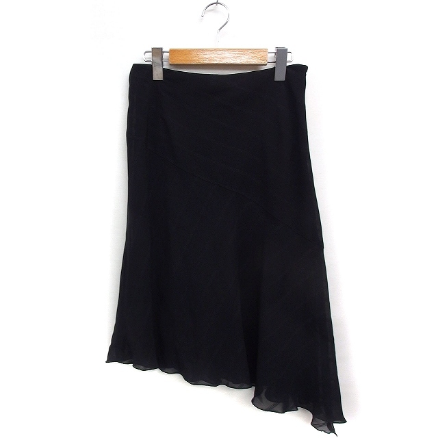 アナイ ANAYI アシンメトリー フレアスカート ひざ丈 ストライプ シフォン 38 ブラック 黒 /FT13 レディース