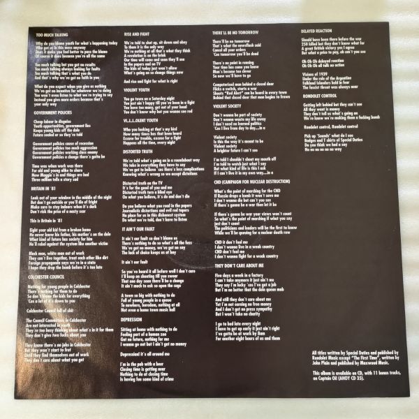 反体制的な歌詞、スローガン的コーラスで「Oi! パンク」の典型例とされます。