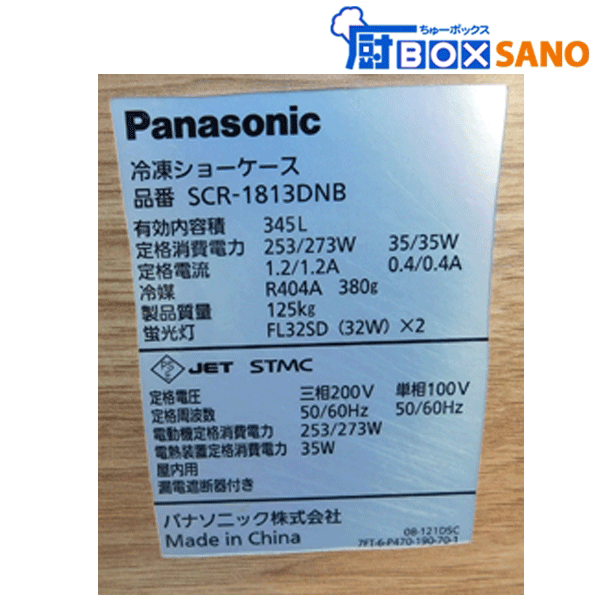 | 名 称 | パナソニック冷凍ショーケース SCR-1813DNB 2014年製 三相200V 100V 業務用 sano6445 |
