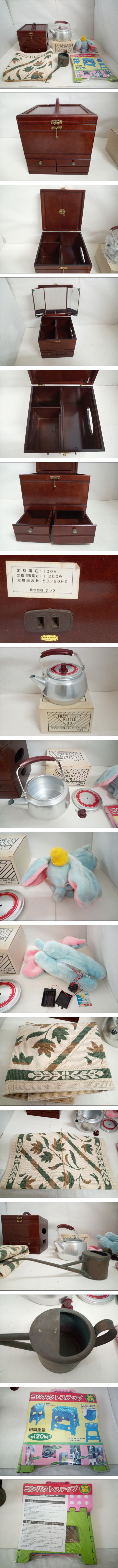 ※離島など別途中継手数料がかかる地域が御座います。 その場合はお振込みを追加でお願いする場合が御座います事、 事前にご了承の程、宜しくお願い致します。 ※送料には業者指定された運送用梱包資材代が含まれます。 専用BOX、段ボール梱包以外での補償は対象外となります。 [商品名] 1円スタート 【未使用品~ジャンク品】三面鏡付きメイクボックス ケトル コンパクトステップ他 生活雑貨 大量おまとめセット [状態] 未使用品~ジャンク品のおまとめセットです。 おまとめセットにつき詳細な状態確認は行っておりませんので、 状態の悪い物もあるかもしれません。 ダンボのぬいぐるみは作動不明です。 汚れがあるものがあります。 ※未開封品は、中身の確認はしておりません。 商品の状態、詳細は画像よりご判断お願い致します。 [状態ランク] S(未使用品)~ B(USED品) 上記状態・条件を御理解頂ける方のみ、ご入札を御願い致します。 ☆注意事項☆ ・商品を落札後は速やかにかんたん決済でお振り込み頂く様にお願い致します。 ・パソコンの画像・画質により色や素材感が、実際の商品と多少異なる場合が御座いますので予め御承諾くださいませ。 ・付属品は写真のものが全てです。