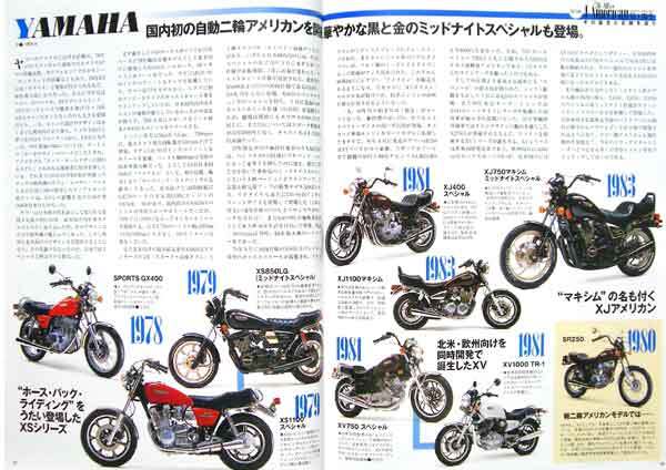 「ジャパニーズアメリカン」特集が17ページ掲載されている雑誌です。 …………………………… ---●ジャパニーズアメリカンの起源 〜カスタムチョッパーからショールームチョッパーへ 〜独自性からトレンドの追求 ---●ホンダアメリカモデルの推移 〜4気筒、Vツイン、V4。多種多様のエンジン形式 ---●ヤマハアメリカモデルの推移 〜国内初の自動二輪アメリカンを開拓、 華やかな黒と金のミッドナイトスペシャルも登場 〜XS650スペシャル 誕生の真実 ---●コラム 「'70年代はアメリカンコーヒーみたいに勝手なネーミングをするわりに XSを理解するのは難しい時代だった」 ---●円道一成とXS11Sが歌うミッドナイトブルース ---●原付アメリカン ---●カワサキアメリカンモデルの推移 〜"Made in USA"を原点に独特な発展を遂げたカワサキアメリカン ---●スズキアメリカンの推移 〜出発は50ccマメタンから。以降ロードスポーツGSとともに歩みを進める …………………………… ○ 15年以上前のバイク雑誌MC別冊、一冊の出品です。 ○ 細かい発行年などの質問はご容赦ください。 ○ 程度は多少のスレがありますが大きな傷み等はありません。 よろしくお願いいたします。388 250612 |