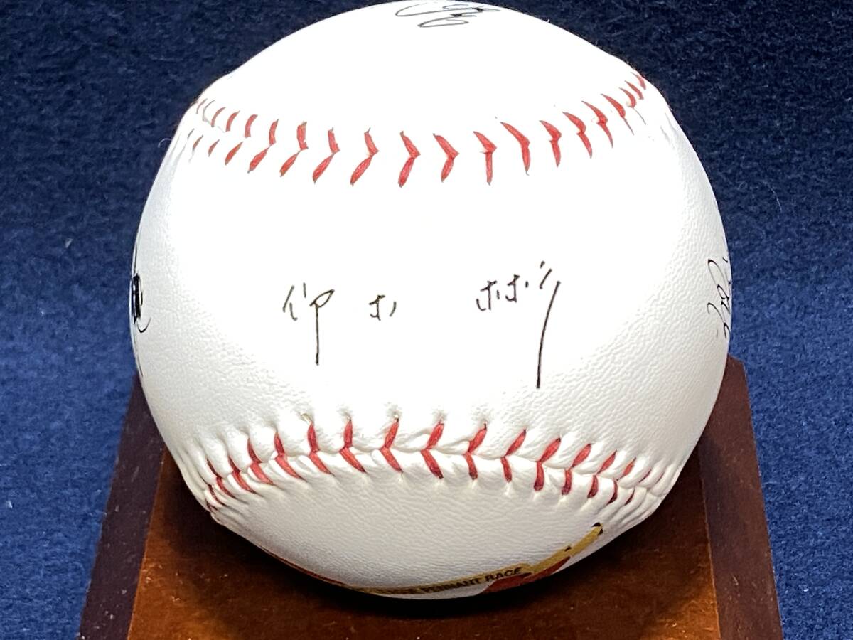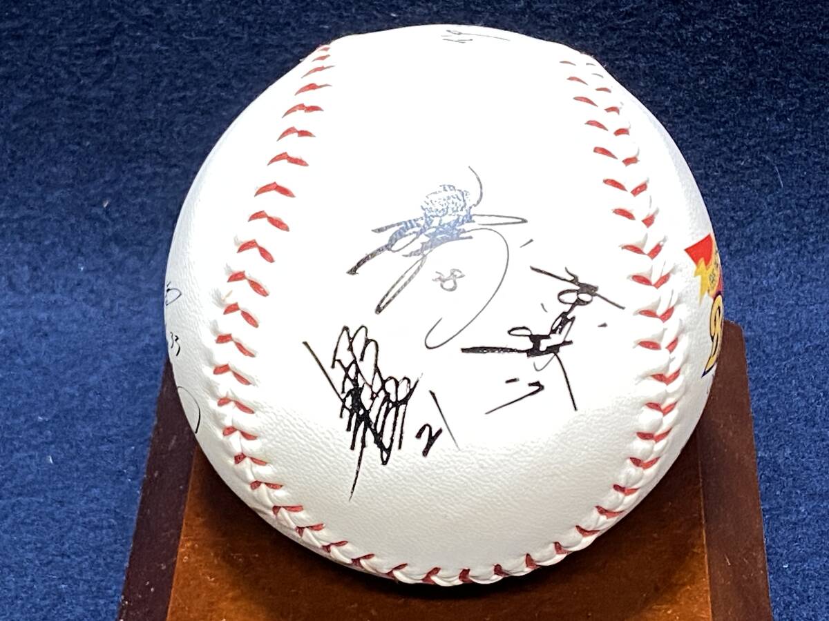 この品は、1995年のパ・リーグ優勝を記念して製作されたオリックス・ブルーウェーブの非売品サインボールで、イチローの印刷サイン入り、台座付き、箱入りの可能性がある当時物。阪神・淡路大震災の復興を象徴する「がんばろうKOBE」スローガンが刻まれた、社会的・文化的背景を持つ記念品だよ。
