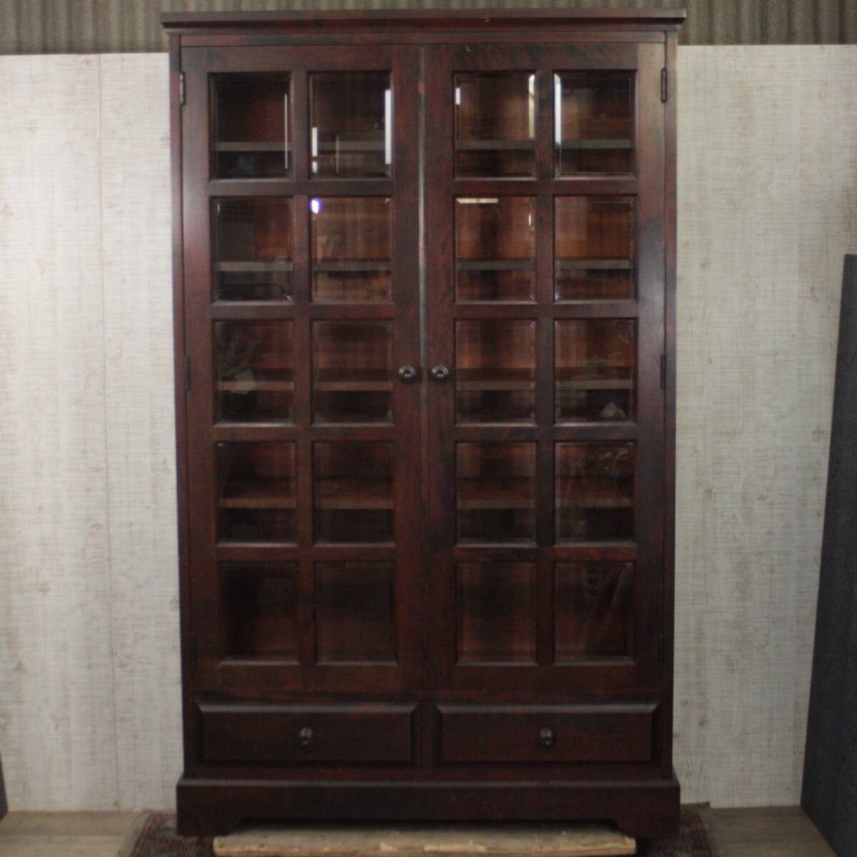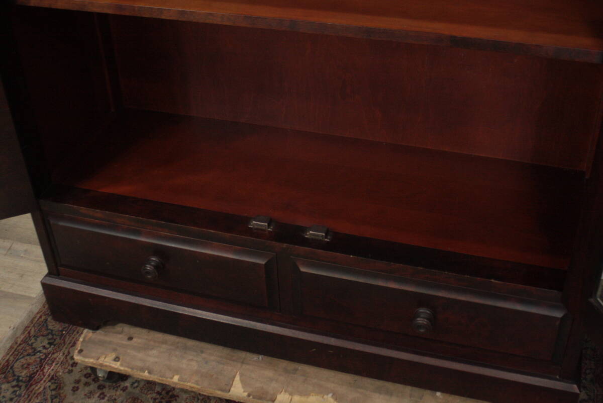 | ∇132 【引取歓迎】北海道民芸家具 飾り棚 リビングボード 本棚 キャビネット 抽斗 木工家具 収納 ビンテージ | ||