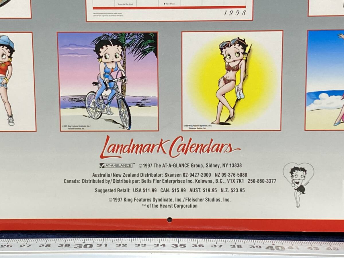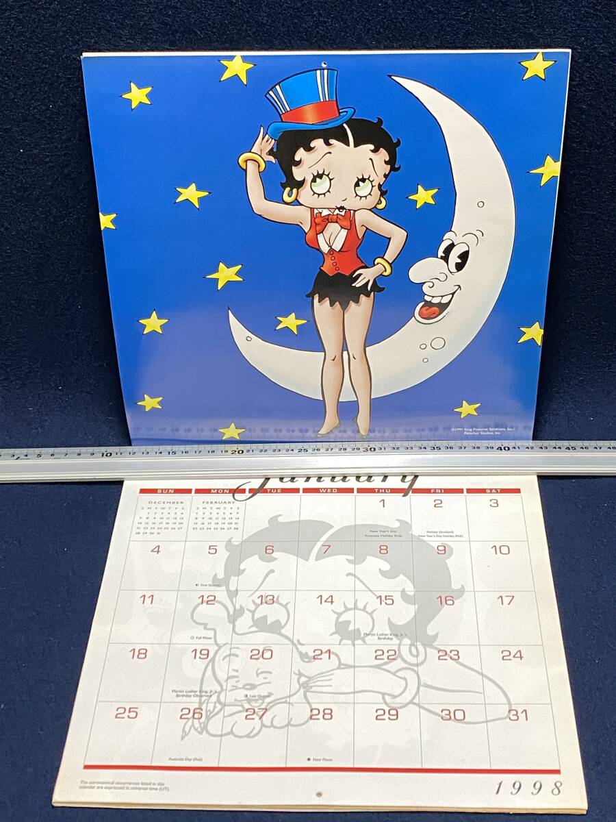 この品は、1998年に製造されたベティ・ブープのドールと紙製カレンダーのセットで、未使用・長期保管されたデッドストック品。ベティ・ブープは1930年代のアメリカン・アニメーションの象徴で、ピンナップガール文化・レトロポップ・アメリカン雑貨の代表的キャラクターとして世界中にファンがいるよ。