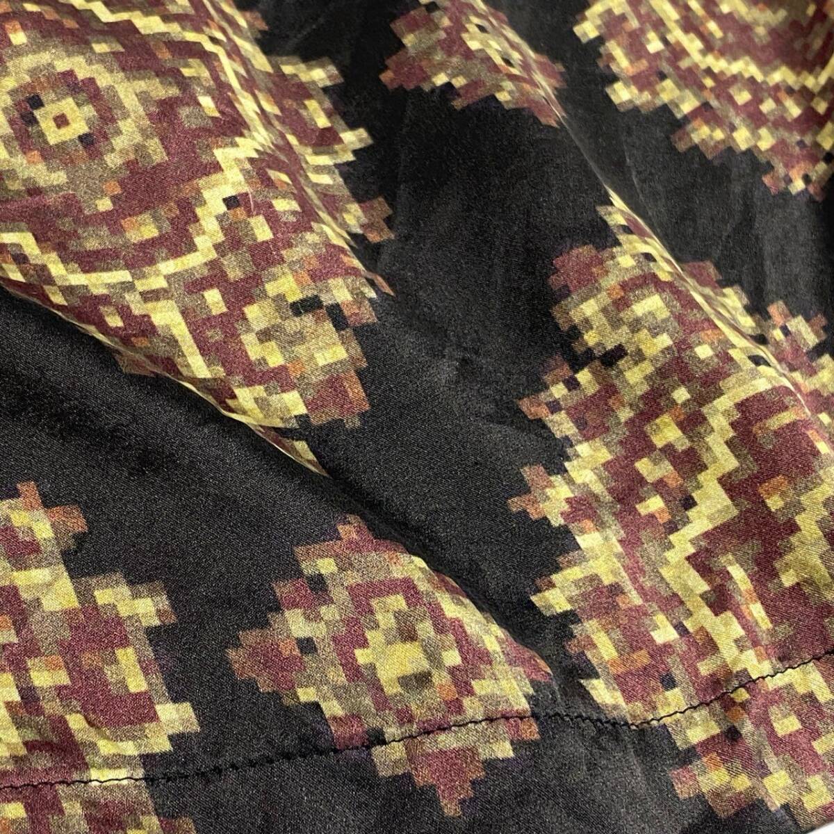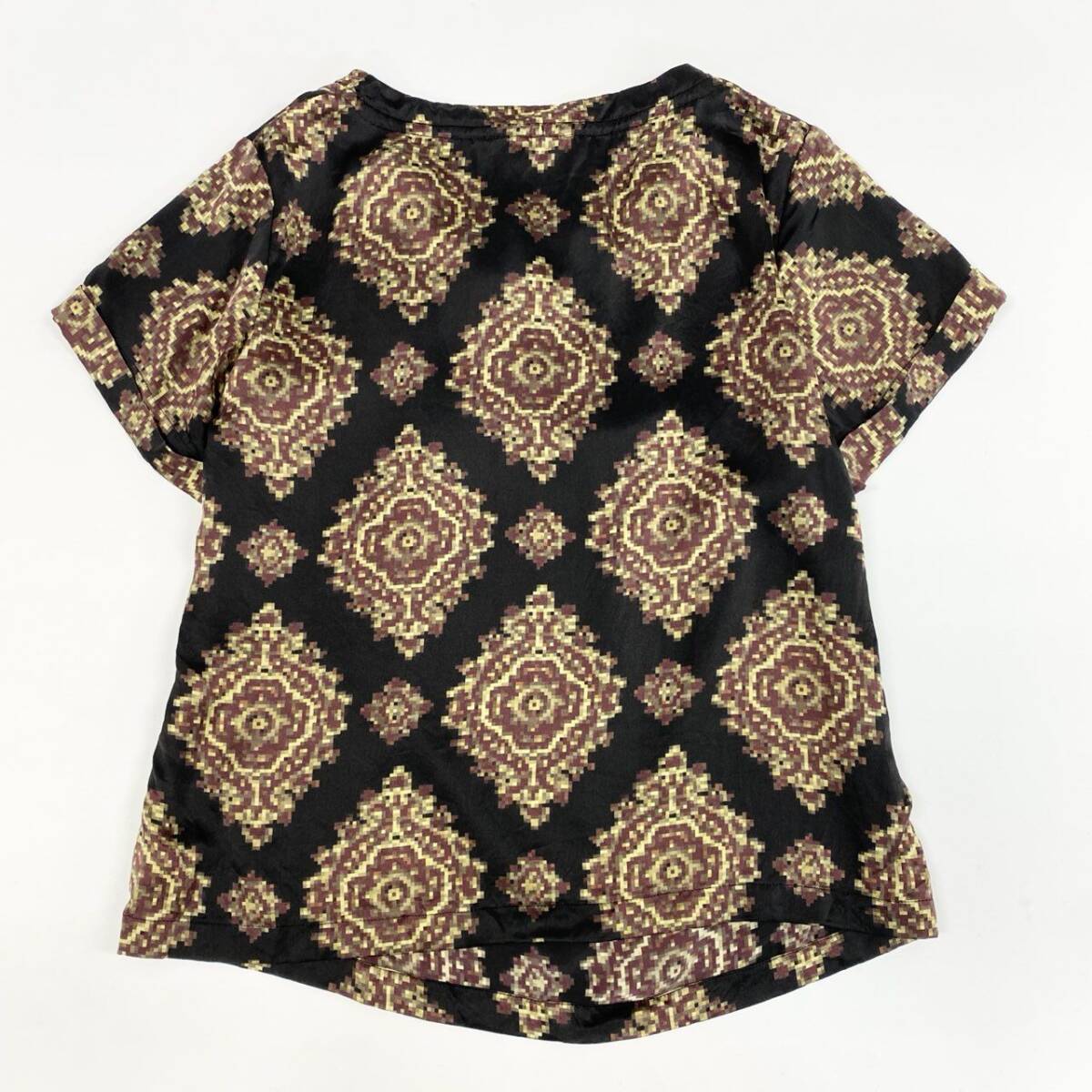 | スタッフ商品コメント | DRIES VAN NOTEN(ドリス ヴァン ノッテン)のシルクカットソー。ブラックベースにゴールドブラウンの幾何学調総柄が映える華やかなデザインです。光沢のある上質シルク素材が肌に優しく、滑らかなドレープを演出。首元のリボンタイ風ディテールが女性らしいアクセントに。単品使いはもちろん、ジャケットインにも映える上品な一枚です。 |