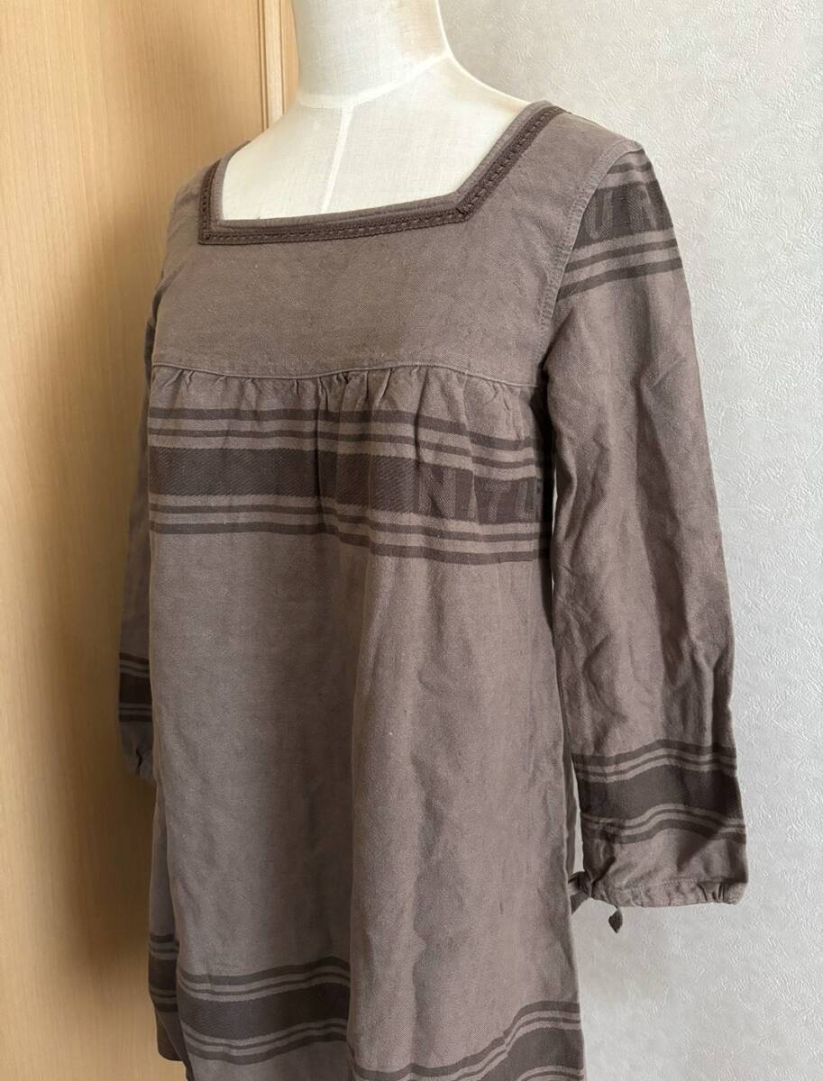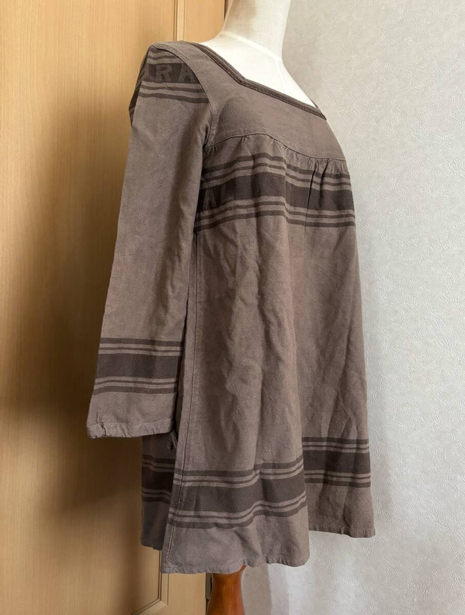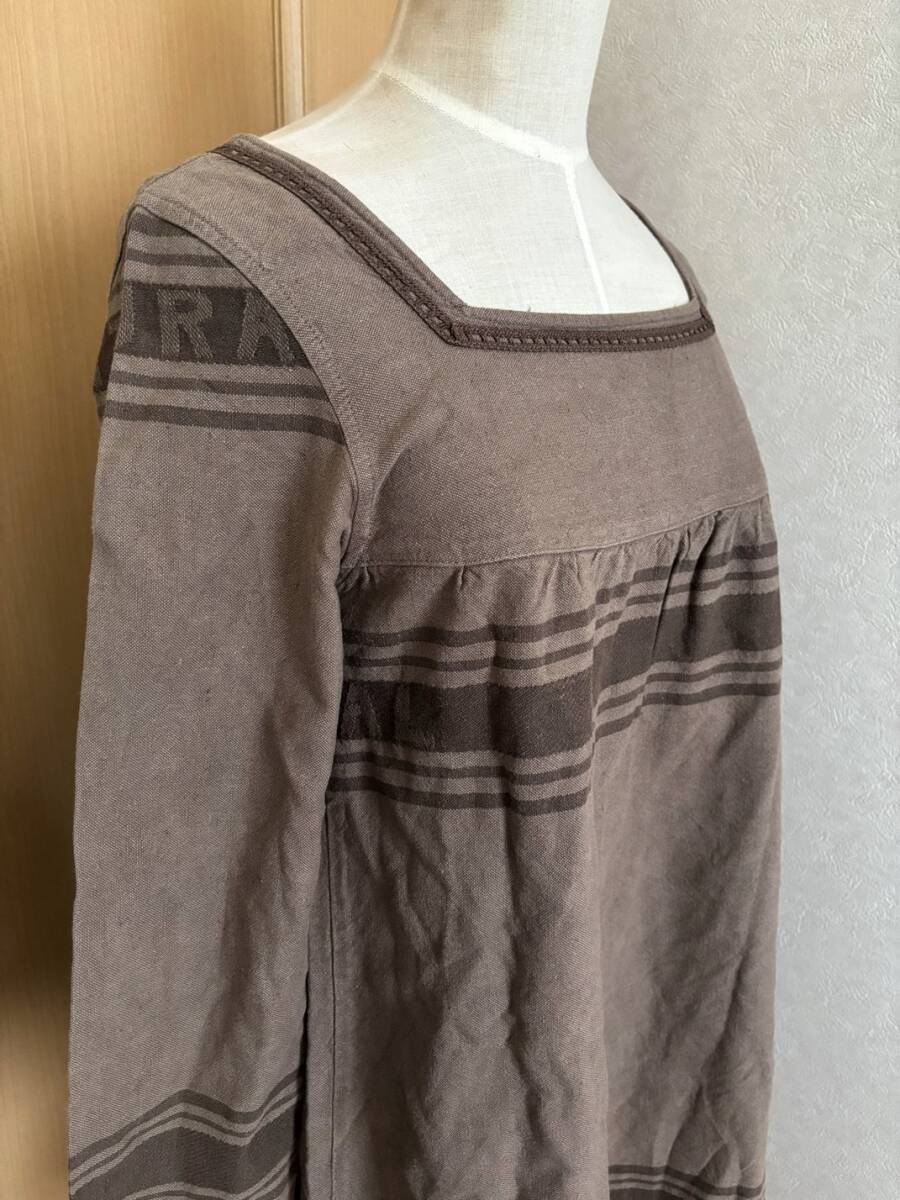 | 【ブランド名】カリネ 【表記サイズ】M 【実寸(cm)】肩幅34/脇幅44/袖丈53/丈69 (平置寸法/多少の誤差はご了承くださいませ) 【素材】綿87%/麻13% 日本製 【色】ブラウン 【状態】使用感の少ない美品です 前後共スクエアネックに、刺繍が施されたデザインです 袖は長袖より少し短めで袖裾に絞り調整用の紐入りです Aラインの形でパンツに合わせてもGOOD♪ ※トルソーはMサイズです あくまでも着用イメージとしてご確認ください 昼間に自然光にて写真撮影しています 晴れや曇りによって色が異なって見えますことご了承ください |