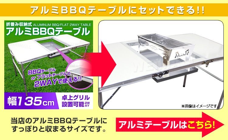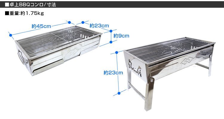 たった2ステップで簡単組立! 卓上で楽しめる、コンパクトBBQコンロです! 本体部は丈夫なステンレス製でサビや汚れに強く、拭き取り掃除もラクラクです。 レジャーテーブルに座ったスタイルで、のんびりBBQを楽しみたい方にピッタリ!! 折りたたみ式で持ち運びラクラク! 【商品仕様】 本体サイズ(約):45×23×23cm 収納サイズ(約):45×23×9cm 重量(約):1.8kg 素材:ステンレススチール 他 【商品内容】 本体 バーベキュー網 ※必ず屋外で使用してください。室内、テント内、換気の悪い場所では使用しないでください。 一酸化中毒、酸欠、火災の恐れがあります。 ※組み立て、後片付けは安全のため手袋をはめて行ってください。 ※海外製品で、簡易梱包での輸入のため風防に擦れや多少の小キズなどがある場合がございますが、 商品自体には問題ありませんのでご了承下さい。 (BBQコンロ バーベキューコンロ バーベキューグリル BBQスタンド バーベキュースタンド BBQ バーベキュー コンロ グリル キャンプ 焼き肉 レジャー アウトドア バーベキュー用品 網 海 川 焚き火 人気 ) |