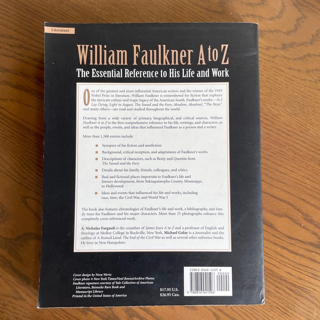 ウィリアム・フォークナーの生涯と作品に関する包括的なリファレンス。 - 著者: A. Nicholas Fargnoli and Michael Golay - タイトル: William Faulkner A to Z - 内容: The Essential Reference to His Life and Work - テーマ: Faulkner's works, family, influences, and characters - ページ数: Over 1200 entries - 言語: 英語 ご覧いただきありがとうございます。