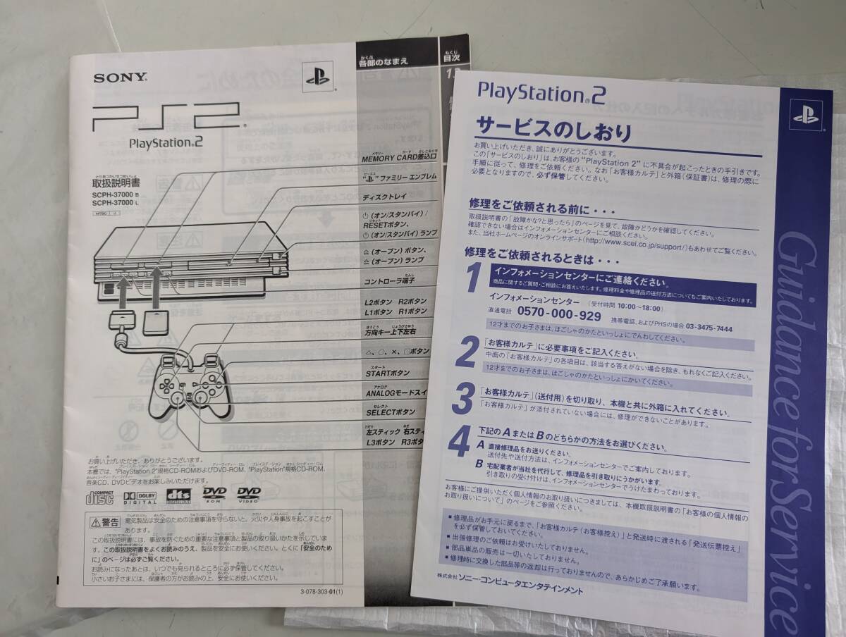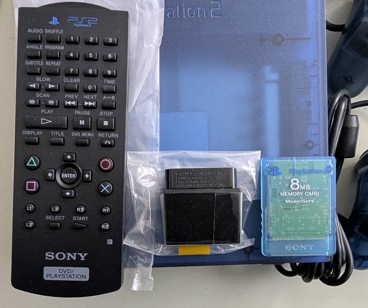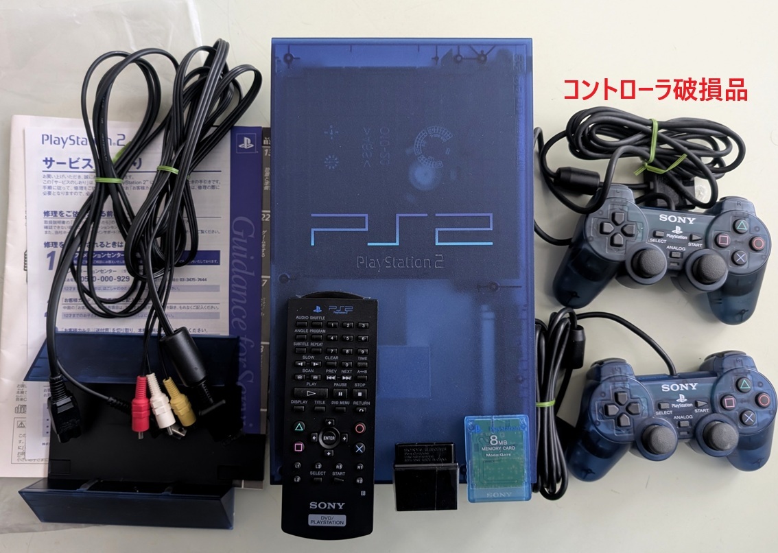 画像1と画像2(破れのある箱)が発送する全てです。印刷物は画像3に示すモノが全てです コントローラ(2個)はボタンの反応しない破損品・不動品です ゲームソフトを入れて手持ちの別コントローラーで動作確認をしました(画像4:ソフト、TVモニターは付属しません) 説明書に沿った全動作を確認していないという意味ではジャンク品(見落とし含め返品不可の破損品)となります DVDリモコン(SCPH-10150)とIRレシーバ(SCPH-10160)は撮影前の封印状態から未開封と思われますが、状態確認のため開封しました。透明保護シールが貼られている状態であること未使用と思われます(画像5:電池は付属しません) 8MBメモリー(SCPH-10020)はオマケ扱いで付属します。中の状態は確認していません 説明文と併せて、掲載画像で付属品の有無や状態を確認できる方の入札をお勧めします →掲載画像以外の付属物がある場合欠品です で別出品中の人気商品はこちら |