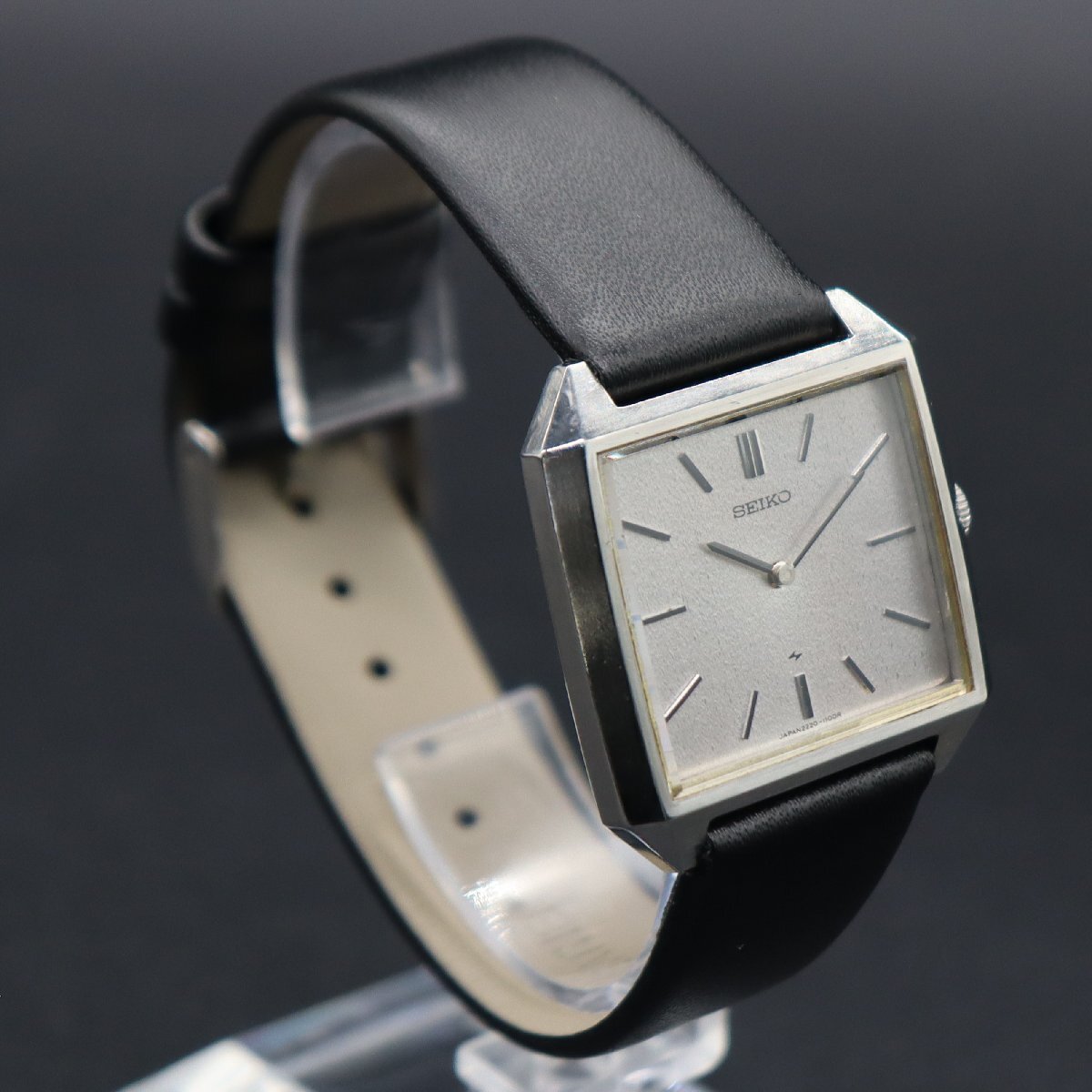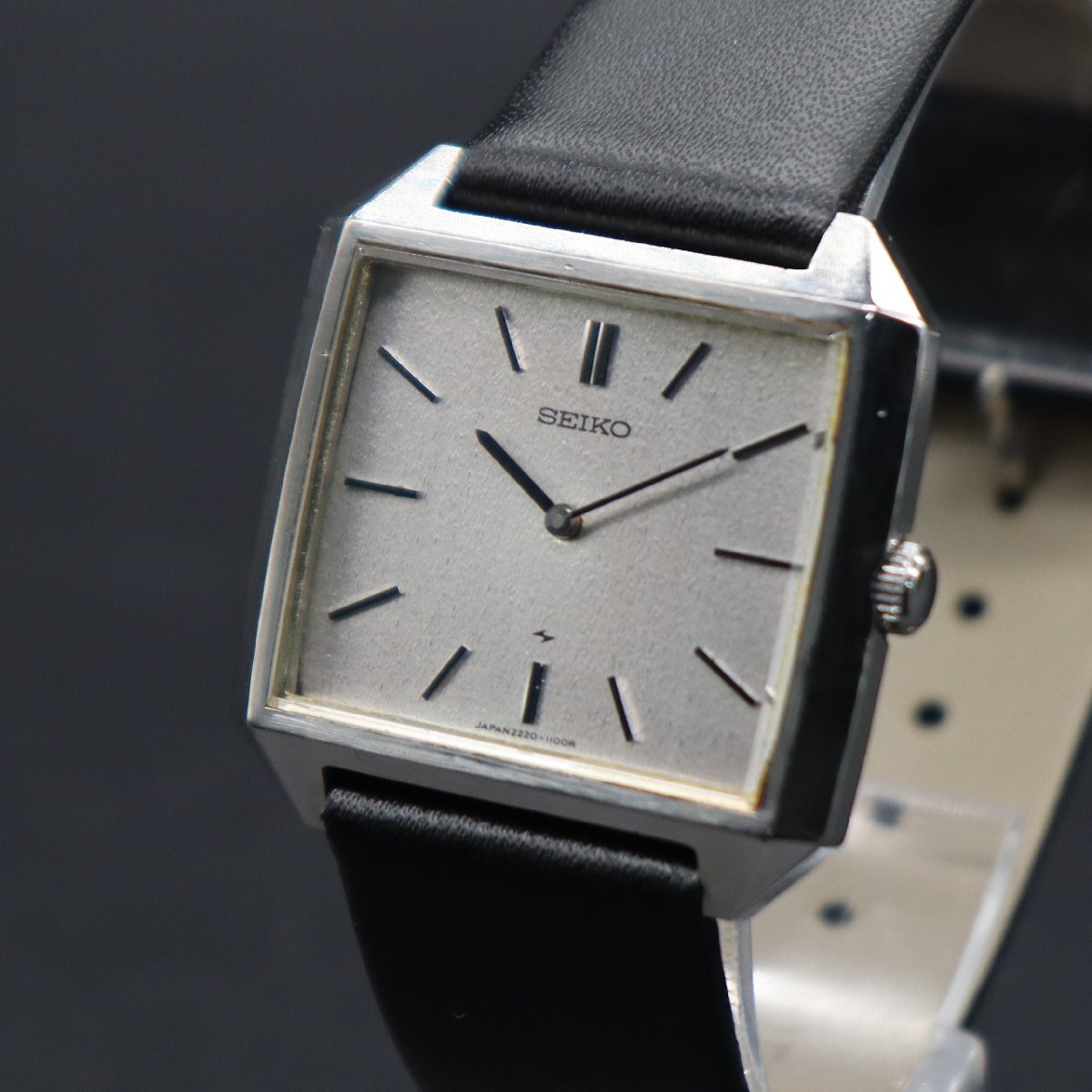 【セイコーシャリオ】 アップル創業者、スティーブ・ジョブズが愛用していたことで世界的に知られています。 実際に彼が着用していたのは、1982年発売のクォーツシャリオですので、 こちらの手巻きシャリオはその前身ともいえるラインになります。 視認性の高い、モノクロの薄型ドレスウォッチ「セイコー シャリオ」。 とにかくシンプルで、無駄のないデザインが人気のシリーズです。 簡易的ではございますが、 出品前に時計全体をアルコール消毒しております。 |