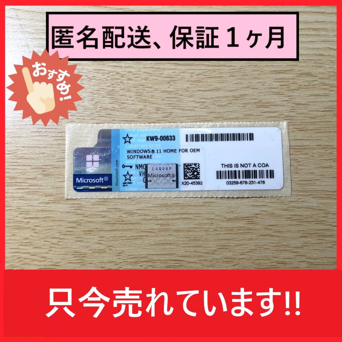 【当日発送】フリマ Windows11 Home プロダクトキー ライセンスキー コアシール正規版未使用品 認証保証