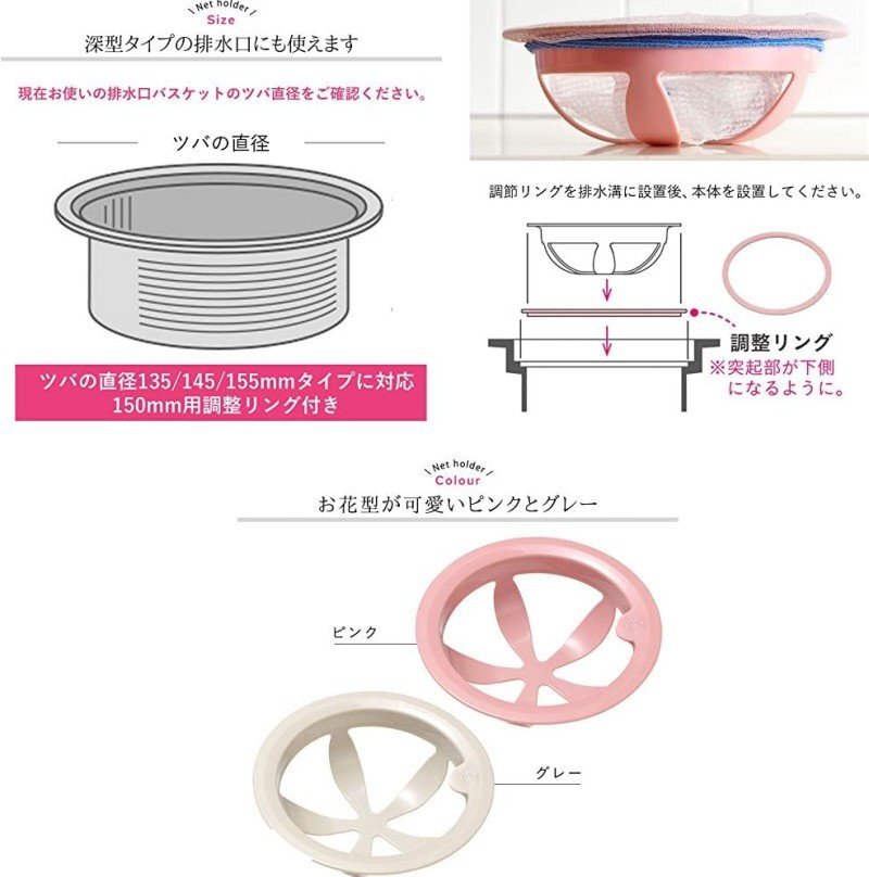 お使いの排水口バスケットに代えて使えば、ヌメヌメ軽減、サッと洗えてお掃除らくらく。 |