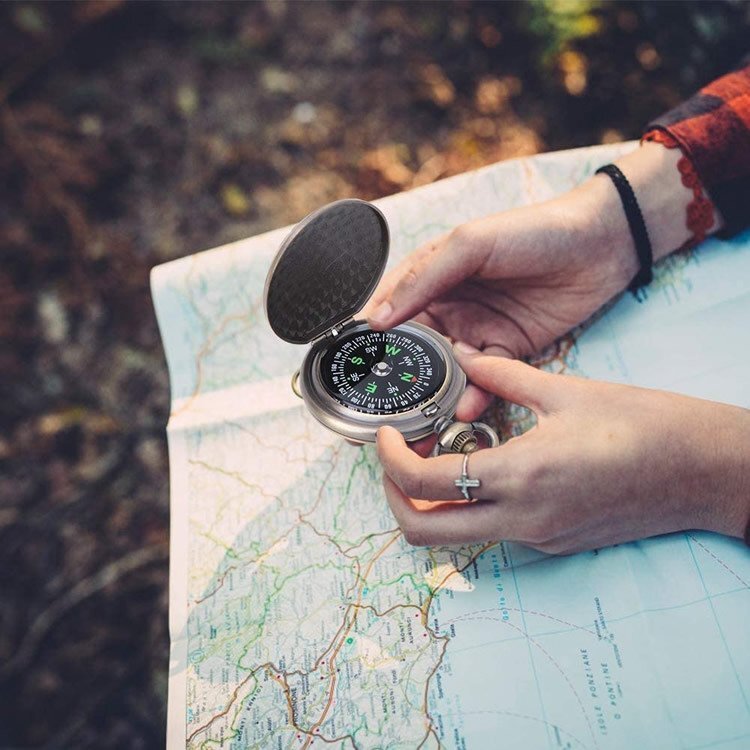 ◆懐中時計式コンパス 方位磁石 懐中時計のデザイン ボタンで蓋開き 生活防水 アウトドア キャンプ ハイキング 登山 防災 レトロデザイン 羅針盤 軽量 コンパクト CPJ35A