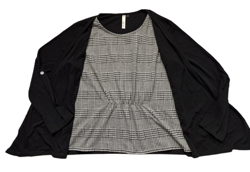 | サイズはL。 身長154-162。 胸囲86-94。 着丈は約70cm、 袖丈脇下から約44センチ。 素材はポリエステル65%・ レーヨン35%。 インナーは取り外しができません。 見落としのあるヨゴレや 多少のオリシワなどある事を ご理解下さい。 |
