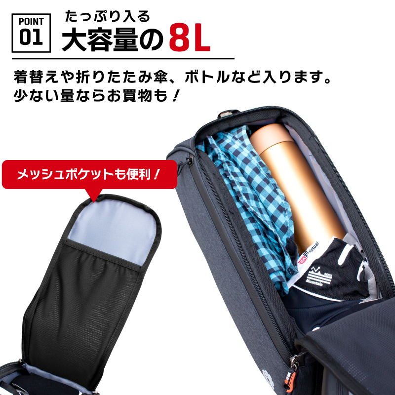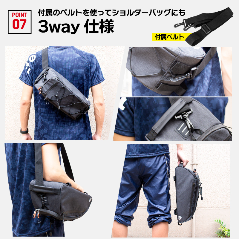 リアバッグ商品内容リアバッグ、ショルダーベルト サイズ約37cm×16cm×15cm 正味重量約500 g 材質300D Polyester、PU 最大容量約8L 防水仕様防水仕様撥水、日常防水レベル/防水ジッパー使用 ※完全防水ではありません ※商品のカラーはディスプレイ種類環境等により実物と異なって見える場合がございます。 《ご注意》 ・商品は入荷によりキズがある場合があります。 保証対象外になりますのでご了承お願い致します。 ・ディスプレイ環境により実物と色が異なる場合が有ります。 ・入荷時期により予告無く一部仕様変更する場合が有ります。 | |