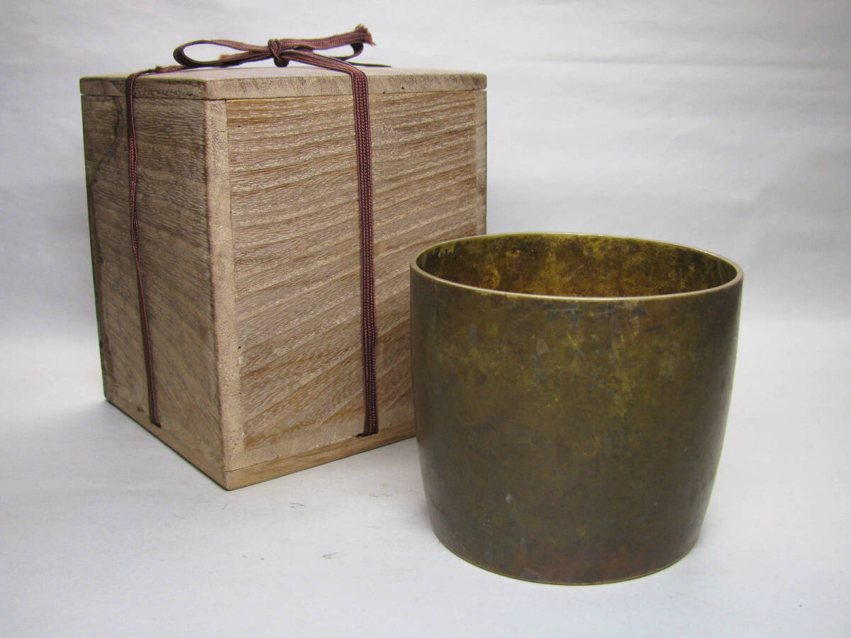 唐銅太鼓胴建水 時代桐箱付 希少良品 時代道具 古銅 煎茶具 | |||