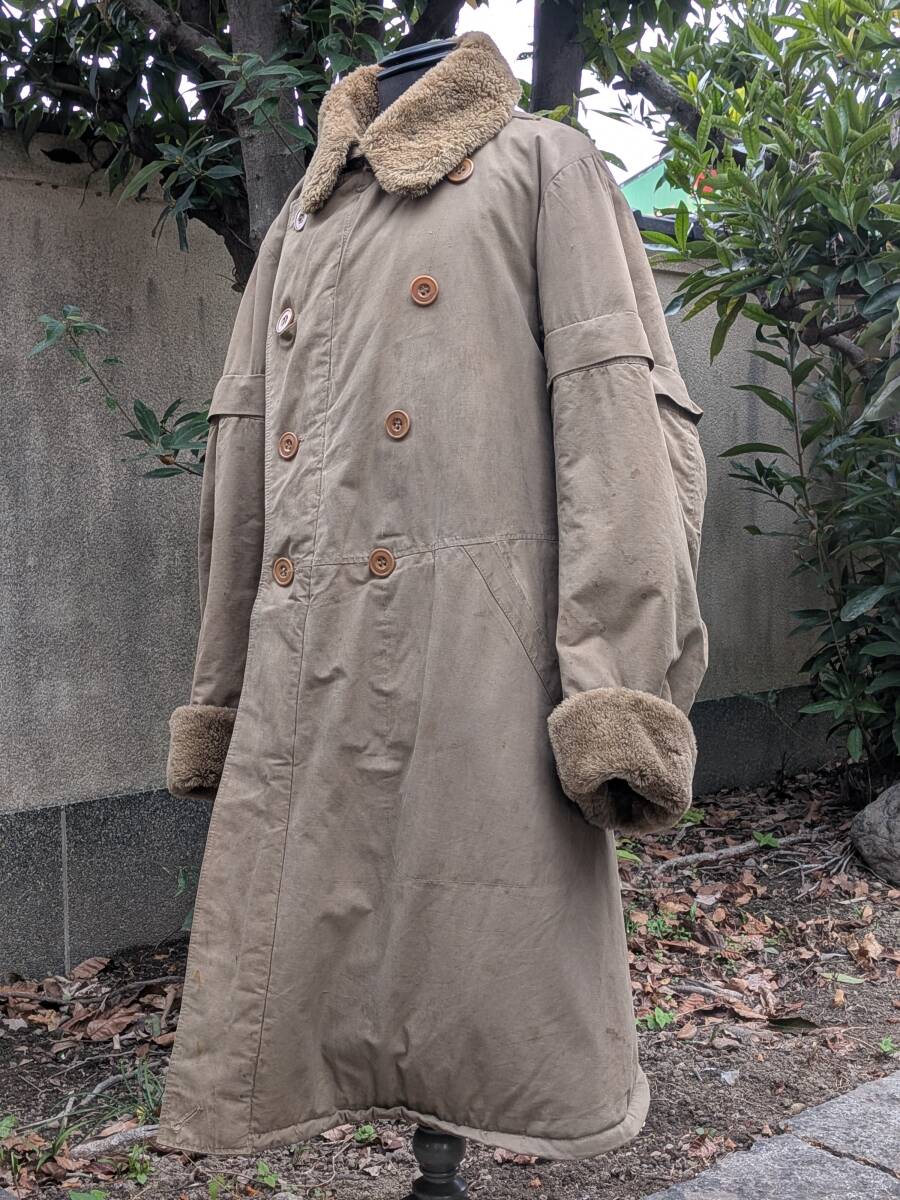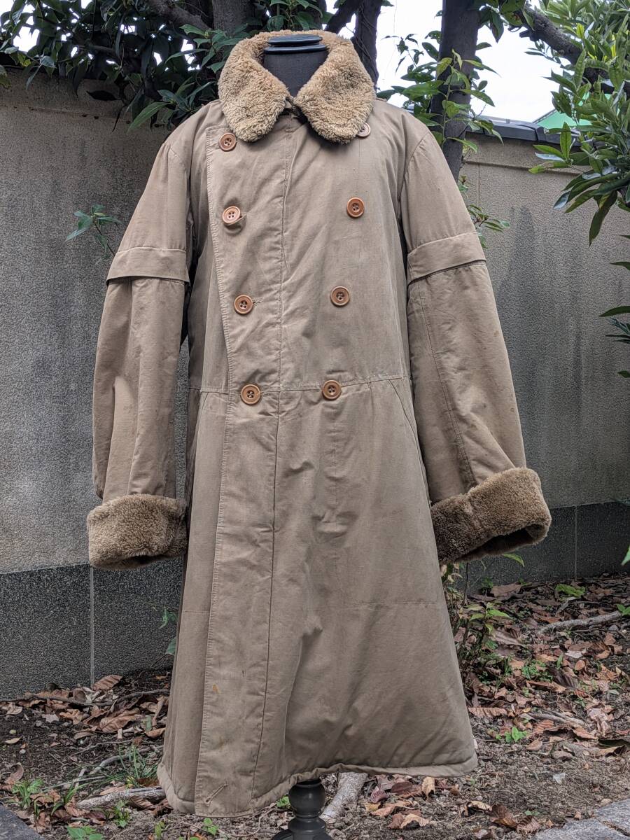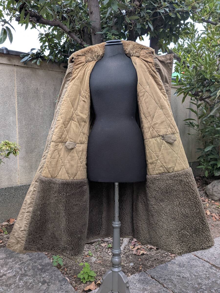 大日本帝国陸軍の兵下士官用防寒外套です。袖が取り外し出来ます。昭和十三年製。中號。官給品。腰の帯革留金具、肩の防寒手袋紐留付の完備品。経年劣化による若干の染み汚れ擦り傷等は有りますが特に目立つ損傷の無いお品です。平置きで肩幅約44センチ、脇下より袖丈約63センチ、背丈約105センチ。当時の本物。| 出价者 | 信用 | 价格 | 时间 |