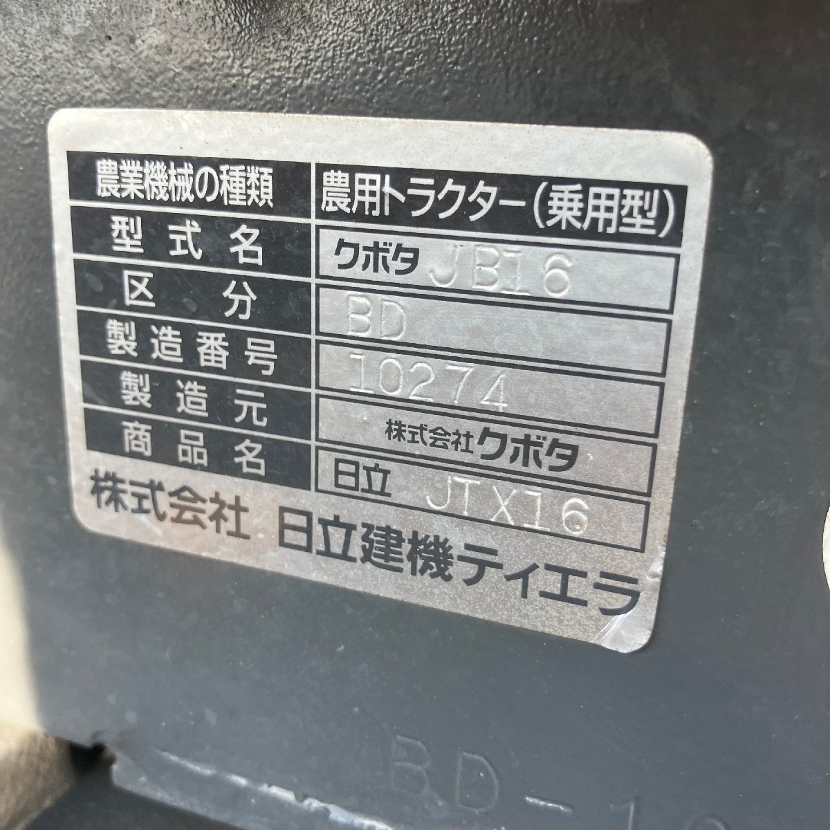 日立 トラクター JTX16の出品です。